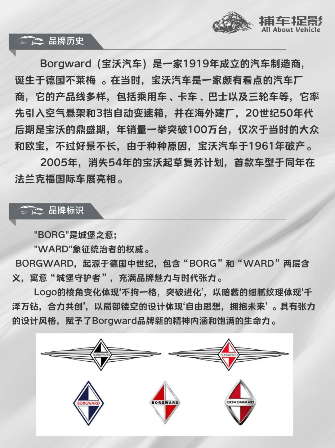 Borgward(宝沃汽车)是一家1919年成立的汽车制造商,诞生于德国不莱梅 。在当时,宝沃汽车是一家颇有看点的汽车厂商。