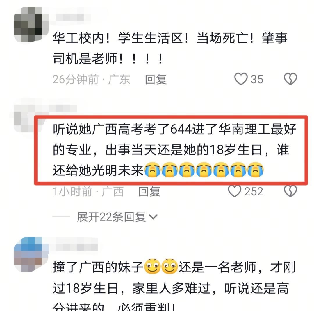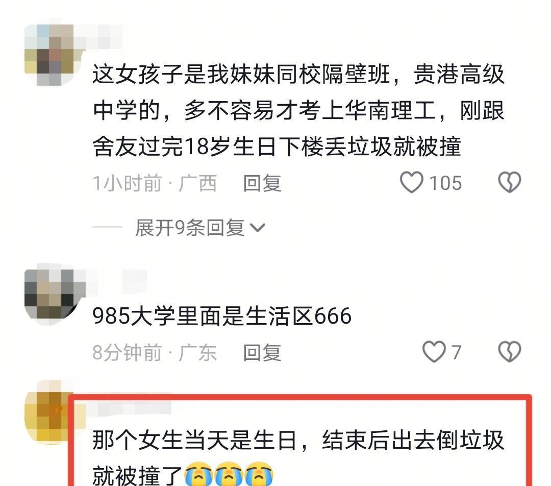 华南理工大学车祸事件经过一晚上,我又挖出几个细节!第一、被撞死的姑娘那天正好是