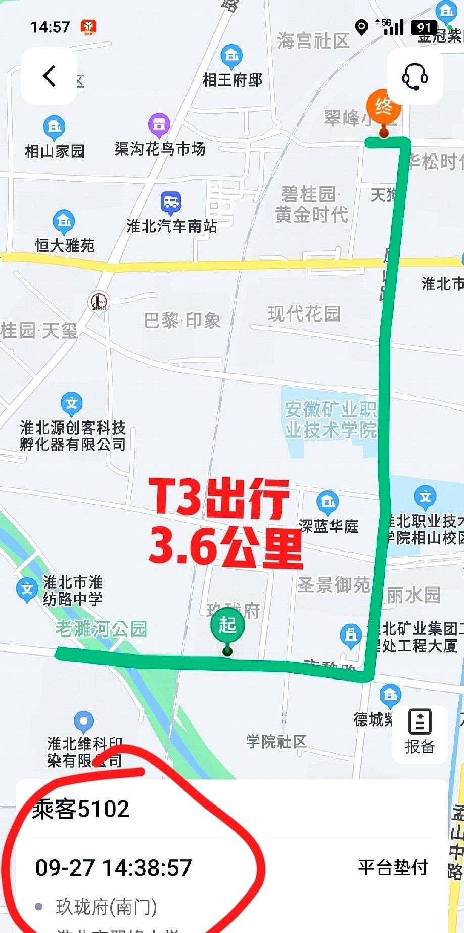 跑3公里只赚7块,T3司机怎么活? 3.6公里,7块2,油费都不够。 乘客掏9块
