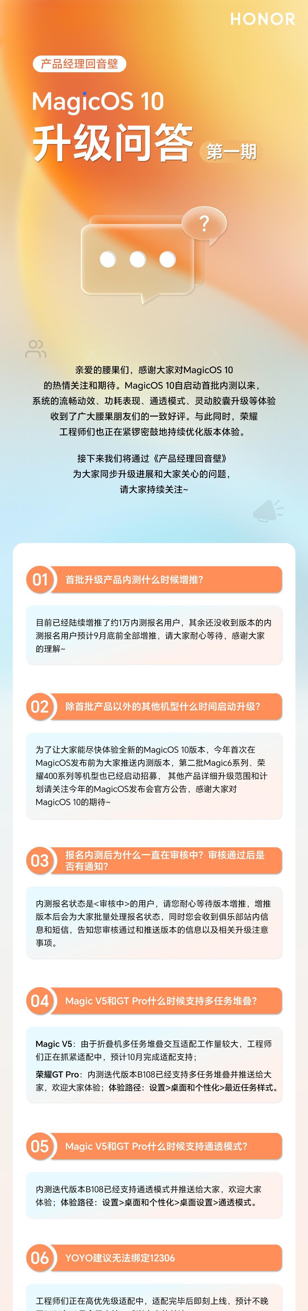 刚刚看到数码圈内大佬分享,9月28日荣耀Magic7系列,参加荣耀MagicOS 10.0内测活动的用户,收到本月最后一次更新,当然荣耀GT Pro、荣耀Magic V5内测用户同样收到了OTA推送升级,那么一起看看,大家都收到了什么更新内容吧 #万能生活指南##畅聊数码新品##数码资讯#