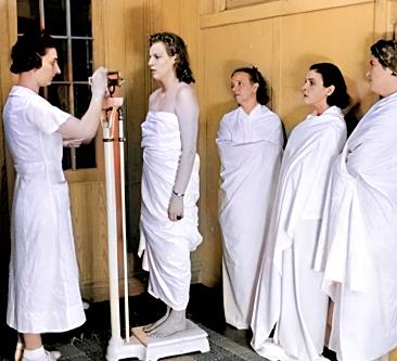 这是上世纪三十年代美国一位身材肥胖的女子在进行一项对她来说惊心动魄的跳马运动。虽然,她的同伴弯着腿,弓下腰后并不高,但这名女子还是跳得很困难。她们并不是闲来无事学跳马。原来,她们都是参加美国减肥中心的学员。 这些学员的身材都比较肥胖。她们自己想在家里减肥但又没有毅力。因此,她们选择参加减肥中心。在这里,她们被半命令式地参加教练为她们设计的每一项运动。其中,这项跳马运动就是众多运动项目中的一项。 当她们集体减肥时,每一个人都非常卖力吃苦。她们经过一天的运动后会进行体重测量。谁的体重减得少就会感觉很丢脸。经过科学合理的减肥后,这些肥胖的女子都能减到令自己满意的体重。