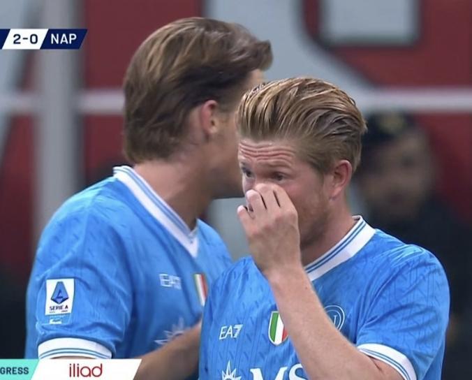 少打一人,保住胜果!AC米兰取代那不勒斯登顶 9月29日凌晨,意甲第5轮,AC米兰主场迎战那不勒斯。莫德里奇、德布劳内两位老将的对决,引人注目。 前4轮,那不勒斯4战皆捷,AC米兰3胜1负。 上半场开赛不到3分钟,AC米兰发动闪电战。从中圈开始,普利希奇长途奔袭,杀入那不勒斯禁区,准确传中,萨勒马克尔斯快速插上,射门中的。AC米兰1比0领先。 第31分钟,AC米兰巧妙配合,普利希奇推射入网。AC米兰2比0领先。 下半场第54分钟,风云突变。主裁判先判罚埃斯图皮尼安禁区内拉人犯规,处以“黄点套餐”。主裁判回看VAR视频,改判“红点套餐”,将埃斯图皮尼安罚下。随后,德布劳内主罚点球命中,那不勒斯将比分追成1比2。 补时7分钟。AC米兰苦苦支撑,终于保住2比1胜果,并取代那不勒斯登上意甲榜首。
