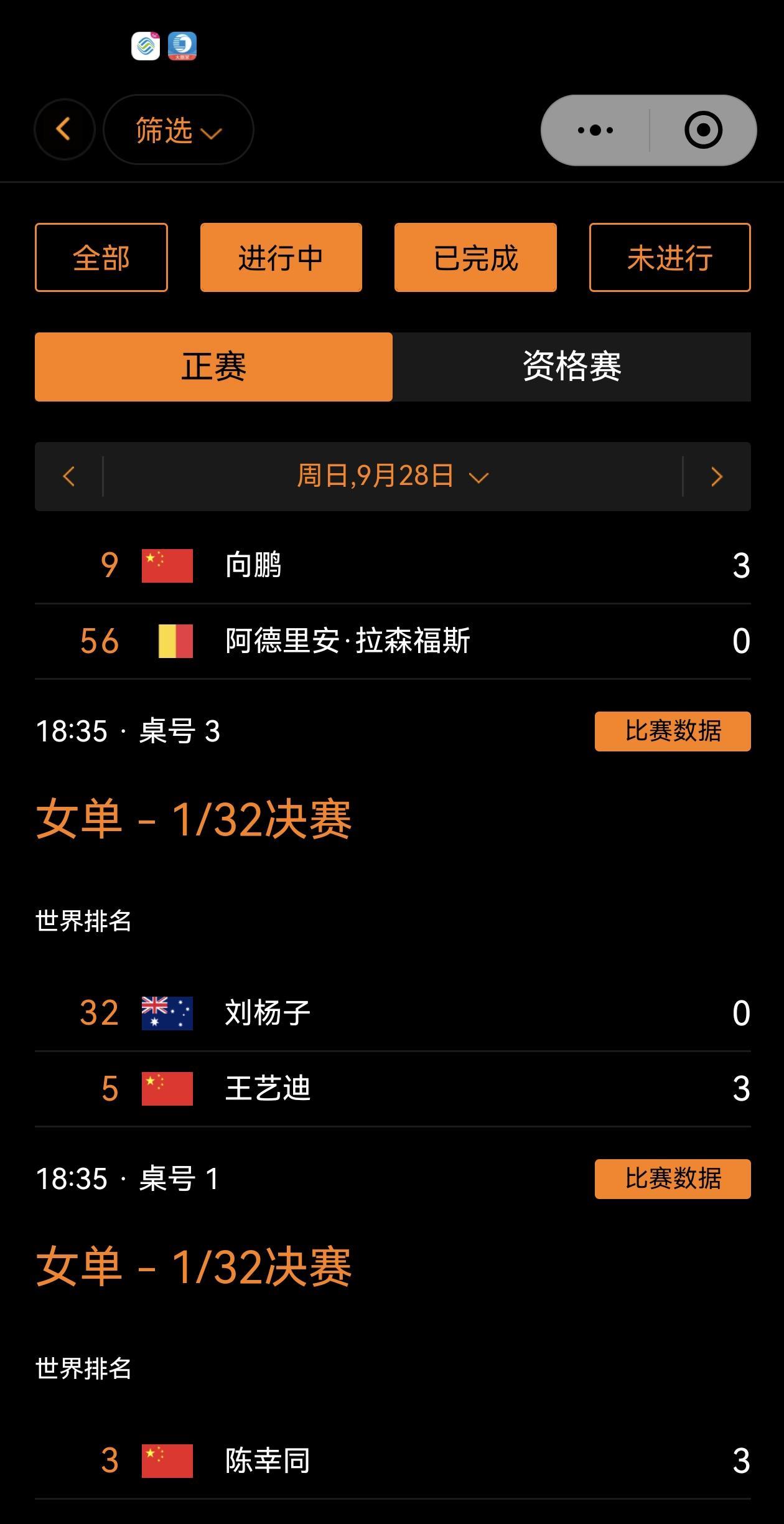 WTT北京大满贯2025,9.28正赛第一天晚场:王楚钦领衔,零封张禹珍,向鹏、