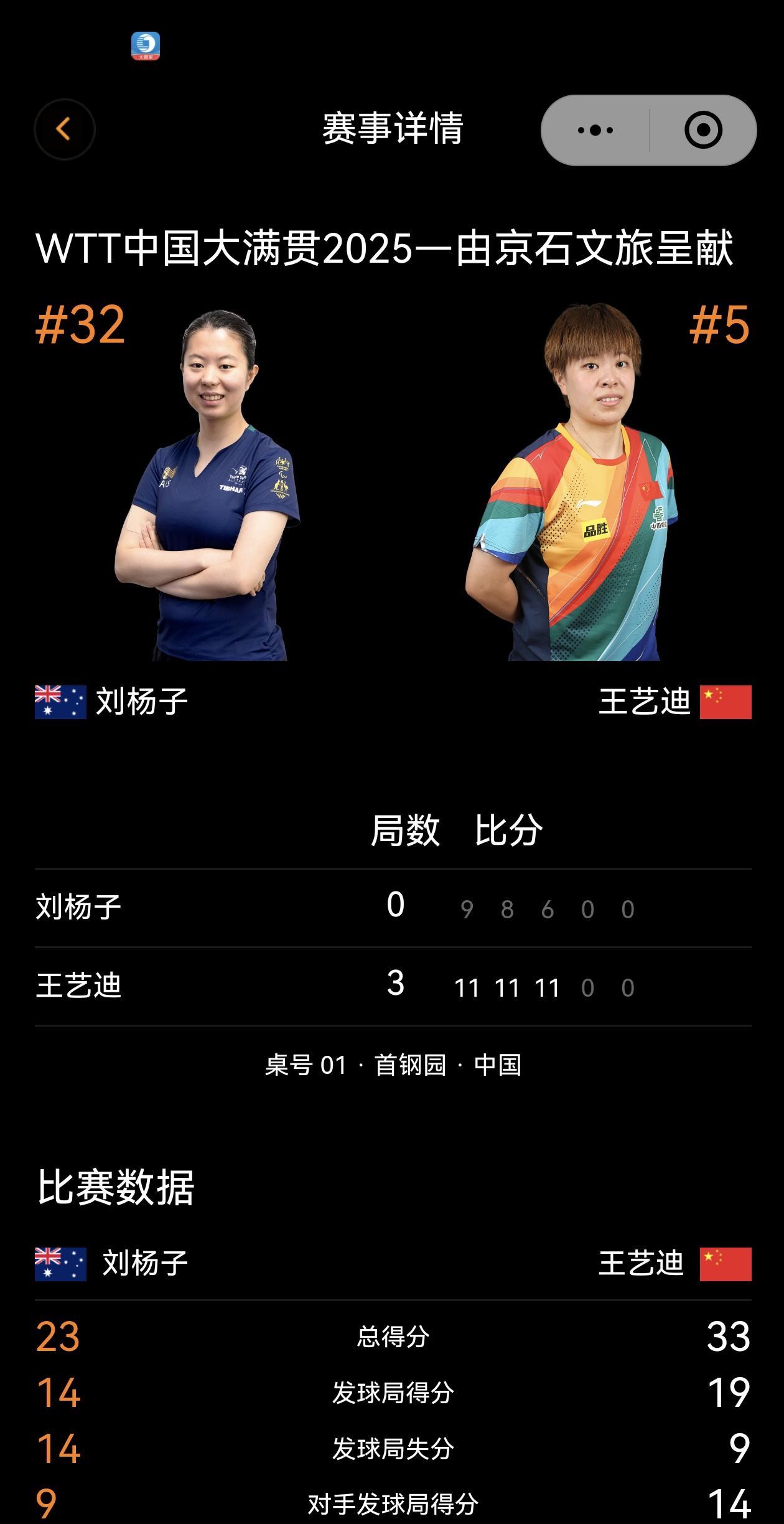 WTT北京大满贯2025,9.28正赛第一天晚场:王楚钦领衔,零封张禹珍,向鹏、王艺迪、陈幸同、陈熠均零封对手,晋级32强;徐瑛彬一轮游。混双薛飞/钱天一3:0智利组合;蒯曼/陈垣宇精彩大逆转3:2法国西蒙高茨/帕瓦德组合。#王楚钦# #蒯曼# #中国大满贯#