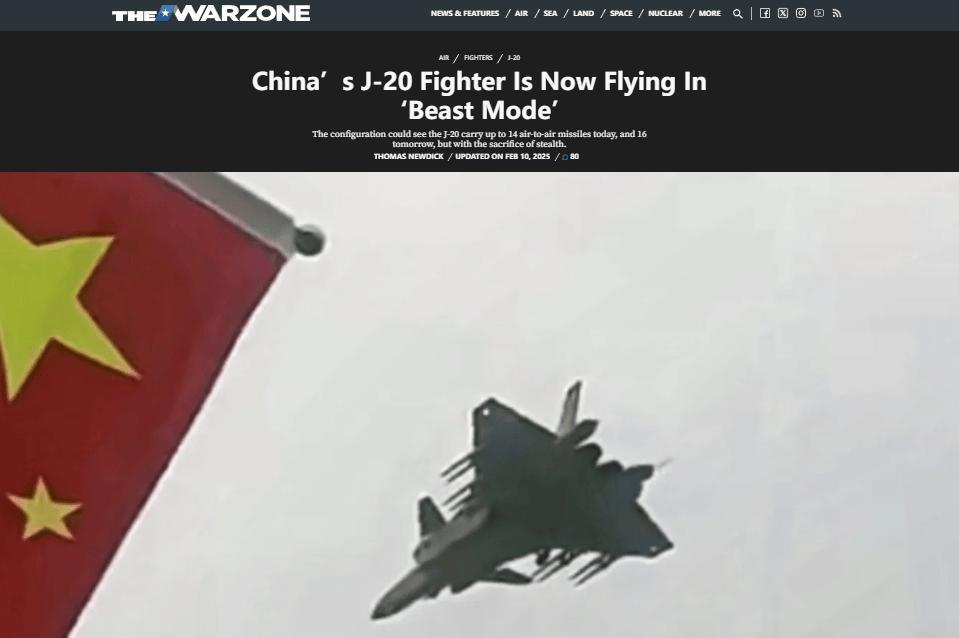歼-20太残暴了,翅膀下挂满霹雳导弹,总共14枚,让F-35怎么活? 日前,有网友在社交媒体上发布一段视频,展示了一架有些特别的歼-20战机试飞画面。画面中的歼-20战机给人一种“武力值爆棚”的感觉,其翼下4个复合挂架至少挂载8枚导弹,算上机腹弹舱的4枚中距弹、侧弹舱内挂载的2枚格斗弹,这架歼-20上挂载了14枚导弹。 这造型不就是此前美国吹嘘F-35战机具备的“野兽模式”嘛,给隐形机装上外部挂架,继续提升挂载能力,显然歼-20这次展示的“野兽模式”比F-35要强悍得多,直接化身空中武库机,具备如此强大的打击能力,这让F-35还怎么活? 实际上, 歼-20的“野兽模式”早在今年2月就有曝光,这种模式虽然会破坏歼-20战机的隐身设计,造成该机隐身性能的下降,但好处也是明显的,打击能力翻了一倍多。而且对歼-20来说,这种野兽模式并不会太影响其作战性能。 首先,歼-20四个外部挂架可以挂载霹雳-15这类中距弹,射程轻松超过200公里,这是世界独有的,歼-20即使不具备隐身性能,仍然可以在对手的导弹有效射程外,发射霹雳-15打击对手目标。