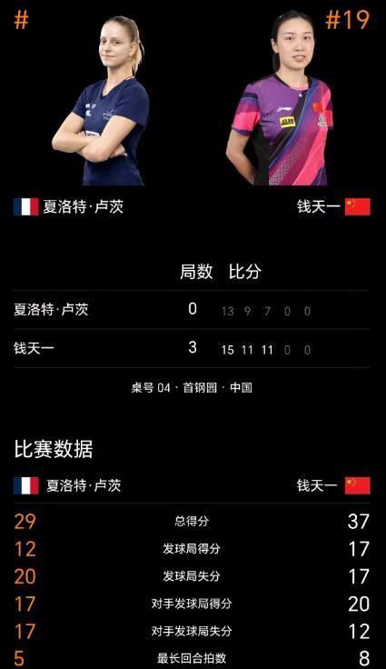 2025年WTT中国大满贯正赛首日,钱天一在女单1/32决赛迎战法国小将夏洛特·卢茨。国乒这次可是派出豪华阵容,志在主场夺冠。 钱天一世界排名第19,胜率达79%,实力强劲。而卢茨虽只有20岁,世界排名第69,进步也快。首局卢茨极具侵略性的打法,让钱天一开局0 - 5落后。但钱天一靠着强大的决胜能力,单局实现逆风翻盘,最终以大比分3 - 0横扫晋级。这比赛真是看得人热血沸腾,钱天一的抗压能力和实力太让人佩服了!