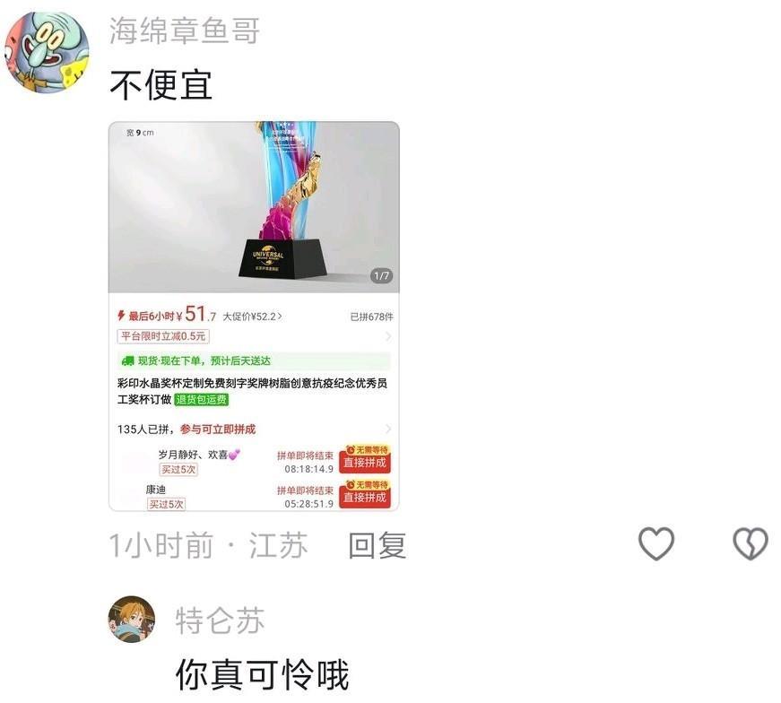 郭德纲福布斯奖杯造价只有51.7元?! 昨日,相声泰斗郭德纲与唐国强等艺术家,荣获2025福布斯中国艺术名家大奖,可喜可贺。 有网友质疑该奖项奖杯廉价,在某平台仅售51.7元;我想说得是,山寨货与真货不可同日而语,即便奖杯表面一样,但赋予的意义也不再平凡。 #德云社# #郭德纲#