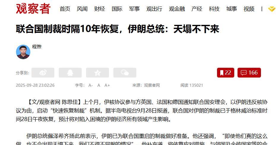 【联合国恢复对伊制裁,伊朗跪都跪了,结果还是被美西方往死路上逼】 联合国于9月28日全面恢复对伊朗制裁,距离以伊12日战争仅过去三个月。尽管伊朗多次承诺绝不研发核武器、核活动仅限民用,并一再退让,美西方仍步步紧逼,联合推动安理会启动“快速恢复制裁”机制。 此前中俄提出的延长制裁豁免草案仅获4票支持,遭美英法德等9国反对。武器禁运、金融封锁、铀浓缩限制全面恢复,连民生物资贸易也受冲击。伊朗里亚尔汇率单日暴跌10%,通胀率逼近40%,经济濒临崩溃。 伊朗总统佩泽希齐扬虽表态“已做好准备”,坚称不会退出《不扩散核武器条约》,但难掩外交困局。伊朗外长阿拉格齐痛斥这是美国退出伊核协议、欧洲埋葬外交努力的直接恶果。 分析指出,伊朗长期在对抗中“留有余地”,既未彻底靠拢中俄,又未赢得西方信任,加之国内派系斗争,导致应对危机能力薄弱。此次制裁重启表面是核不扩散框架的“胜利”,实则是多边秩序的溃败,更是霸权游戏中弱国的悲剧。 这场危机给所有非西方国家上了残酷一课:在强权即真理的体系中,妥协退让换不来生存空间。若不凝聚力量坚决抗争,等待的只有被步步绞杀的命运。