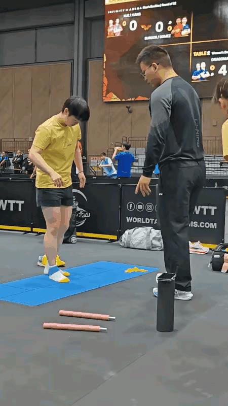 莎莎是粗糙中带着精致, 今天莎莎没有比赛,和翔哥在练体能,看莎莎的小袜子。 莎莎更会搭配,穿黄色文化衫就会搭配黄色拼接袜。 也不知道莎莎到底有多少双拼接袜子。 莎莎明天(30号)有单打,1号和王楚钦有混双。 王楚钦一号有三场比赛,又是国庆放假每一天,估计现场观众得爆!