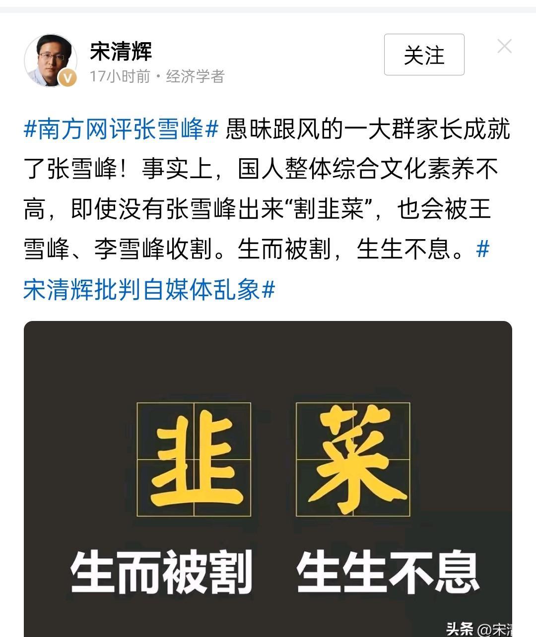 宋清辉又在阴阳张雪峰了,然后还阴阳了一把大家,觉得我们家长都是愚昧跟风的一群人,