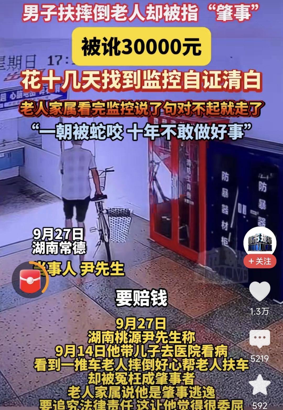 这个新闻太让人难受了。湖南桃源尹先生,好心扶起摔倒的老人,结果又反被老人及家属诬