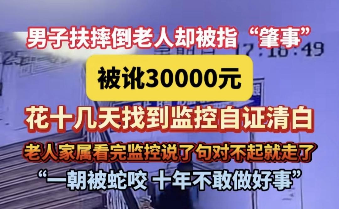 这个新闻太让人难受了。湖南桃源尹先生,好心扶起摔倒的老人,结果又反被老人及家属诬陷,被讹3万元。尹先生花了好长时间才找到监控视频自证清白,这自证清白的过程,就是对人的善良和爱心的又一次扼杀。“不是你撞的,你为什么要扶?”,某法官的一句名言,真的让道德倒退了好多年。明明是做好事,为什么经常惹祸上身。如果我们不对讹人者诬陷者严加惩罚,那么今后恐怕没有多少人有胆量去做好事了。我们70后这一代人看到这些情况真的很难受,那个时候我们接受的传统教育,看到老人小孩倒下,一定会去扶起来,那个时候只有感谢,没有诬陷和讹诈。作为教育工作者,我真的很担心这样的现象蔓延,因为我甚至不知道该怎么给我的学生解释这样的现象,我不知道该不该鼓励孩子们去做好事。如果我们身边没有了善良和爱心,我们都独善其身,我们的社会就会缺失了很多东西。我想我遇到老人倒下,我还是会去扶,但我确实不太清楚如果被他们讹诈,我该怎么办。
