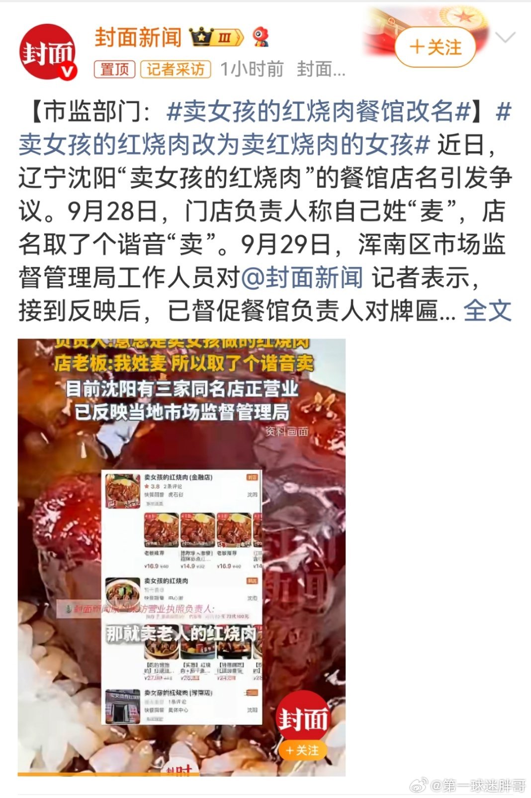 卖女孩的红烧肉改为卖红烧肉的女孩 谐音梗营销需兼顾公序良俗;而“卖女孩”则踩越红线;餐饮核心竞争力在于产品与服务,而非猎奇噱头。事件以餐馆主动更名落幕,但暴露了商业命名中为博流量忽视社会价值的短视行为。真正可持续的餐饮品牌,需在创意与公序良俗间找到平衡,“卖红烧肉的女孩”虽少了争议,却多了对消费者的尊重。监管机制的完善,则是杜绝此类黑红营销的关键防线。