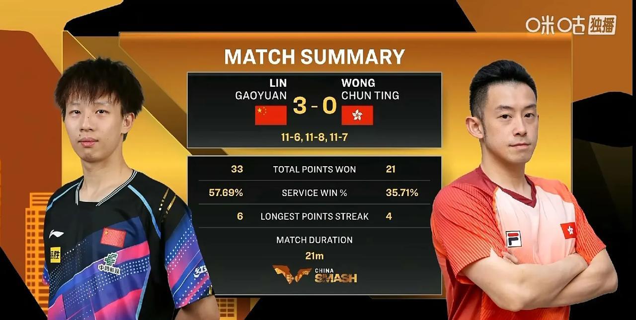 林高远终于赢球了,难得!WTT中国大满贯男单首轮,林高远直落三局,以11:6;11:8;11:7的比分完胜香港名将黄镇廷,晋级男单32强。希望下一轮继续赢球。 而希望之星黄友政苦战五局,以2:3负于法国小将泊雷特,止步男单首轮。追回第四局后,决胜局黄友政以2:10落后,虽然挽救了两个赛点,但还是以4:11交出全场比赛。