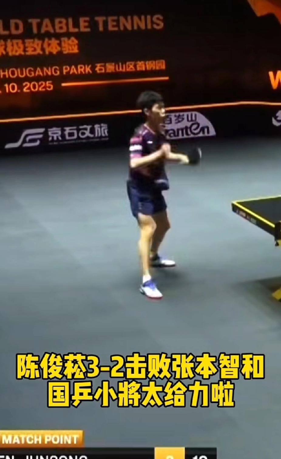 国乒小将陈俊菘爆冷3-2击败张本智和,晋级北京大满贯32强 在2025年北京乒乓