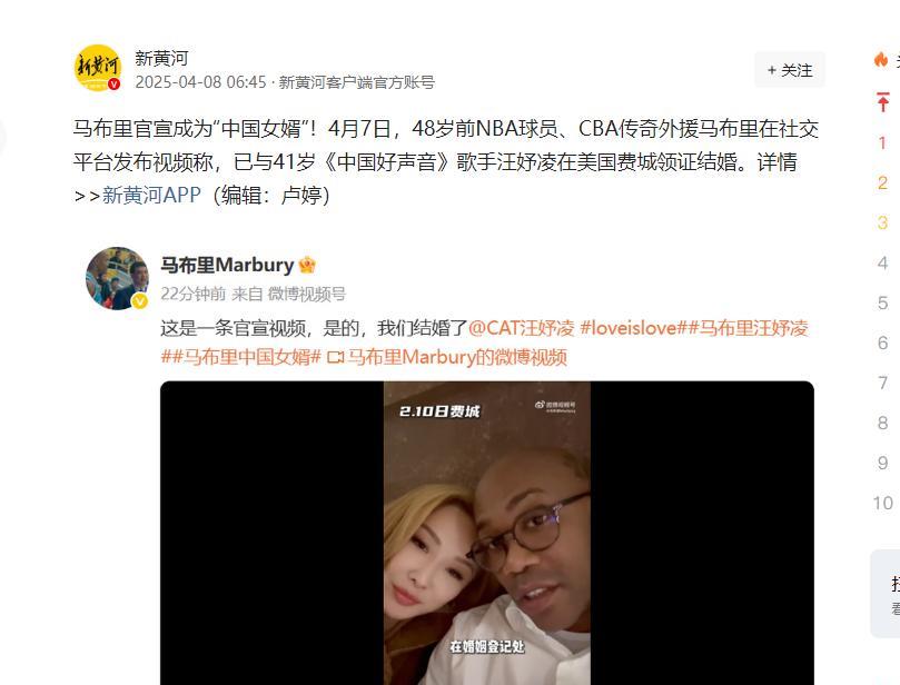 马布里与中国歌手汪妤凌在美国费城领证结婚,这是彻底把中国当家了。 马布里之前还有三个孩子,一个跟女友所生,另外两个跟前妻所生。也可能是为了挣点奶粉钱,在NBA失意的马布里决定远走中国,辗转山西汾酒,佛山龙狮,最终在首钢成名,带领首钢实现“三连冠”。 马布里,今年48岁,作为CBA历史上最成功的外援之一,他的篮球生涯可谓辉煌。 在CBA的岁月里,马布里效力过多支劲旅,最为人熟知的,莫过于他在北京首钢的表现。 凭借着出色的个人能力和领导力,马布里帮助首钢三度夺得CBA总冠军,成为球队不可或缺的灵魂人物。 退役后,他的执教生涯并未延续球场上的辉煌。 执教北京北控四个赛季,虽然有过一次闯入季后赛的经历,但整体成绩远不如预期,证明了他在教练岗位上与球员生涯之间的巨大差距。 值得注意的是,马布里曾有过一次婚姻,并育有三个子女。随着时间的推移,他与汪妤凌的关系逐渐曝光,二人先后在社交媒体上晒出甜蜜互动,令人感受到浓浓的爱意。 马布里与汪妤凌一起去美国见家人,公开了他们的恋情。不到一个月后,马布里在社交平台上宣布自己与汪妤凌登记结婚。这个消息迅速引起了广泛关注,马布里“结婚”的话题在社交媒体上迅速登上热搜。 与汪妤凌的婚姻,让马布里不再只是CBA的篮球传奇,他的身份也发生了微妙的变化。 如今,他不仅是一个职业运动员、教练,还是一个“中国女婿”,真正融入了这个家庭,也成为了中国社会的一部分。 汪妤凌并非普通人,她是一位来自武汉的才女,曾参加过《中国好声音》,并为电影《绣春刀》献唱过主题曲,作品还登上过美国公告牌排行榜。 她不仅在音乐领域有着相当的成就,而且和马布里无疑是强强联合,彼此的光环和成就让他们的关系更加引人注目。 虽然他们选择在美国费城领证,但婚讯在中国掀起的舆论风暴更为剧烈。社交媒体上,祝福的声音不绝于耳,但与此同时,也有一些不太友善的声音。有人对他未来孩子的国籍产生猜测,也有人酸溜溜地评论说马布里“赚了钱,抱得美人归”,这些话显然引发了不少单身男性的情绪。 虽然这些话题让人不免思考,但其实,抛开这些外界的议论,最打动人心的,还是马布里和汪妤凌在生活中的点滴互动。 比如汪妤凌教马布里骑三轮车的小片段,这些看似普通的日常,展现了两人跨文化的融合与温暖,才是真正的幸福与真实。 从篮球场上的救世主到如今成为一个家庭的支柱,马布里经历了人生的转变。他的身份不再仅仅是球场上的英雄,而是一个有着家庭责任感的男人。与汪妤凌的婚姻,代表了他与中国的紧密联系,这份联系不仅仅体现在工作上,也在日常生活中深入人心。 这段婚姻让他彻底扎根在中国,不再是某个外国人或外援的标签,而是一个有着真实情感归属的家庭成员。 他与中国的联系,已经超越了纸面的合同和表面的身份,而是融入了生活的方方面面,从柴米油盐到每个温暖的瞬间,都见证着这份情感的深厚和坚韧。