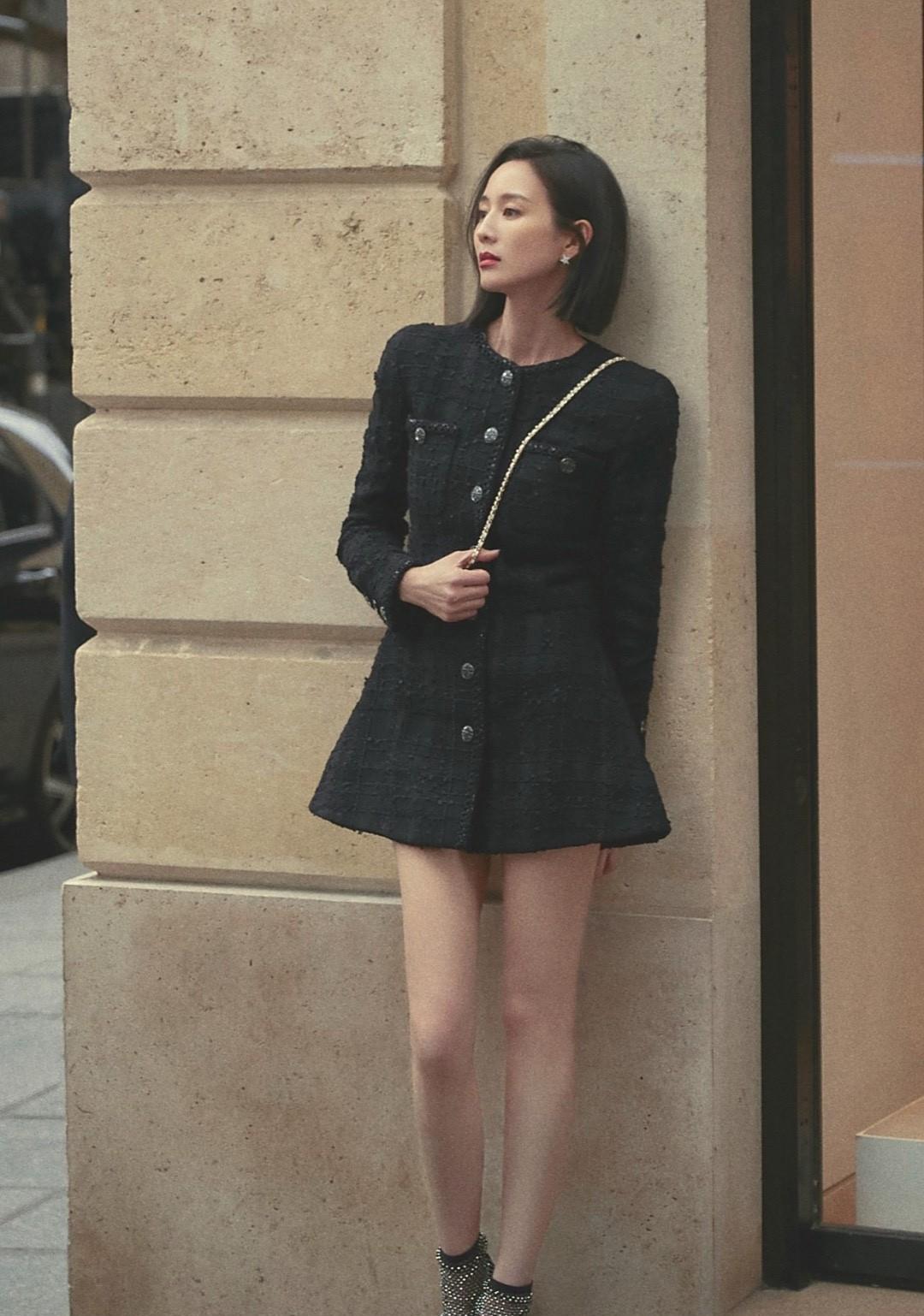 谁能想到张钧甯小香风还能这么飒! 一身黑色粗花呢裙装亮相活动,伞状下摆衬得腰细腿长,搭配钻饰短靴,把优雅和气场焊死在身上。行走间尽是法式风情,这穿搭简直是财阀千金模板!#张钧甯# #轻奢小香风#