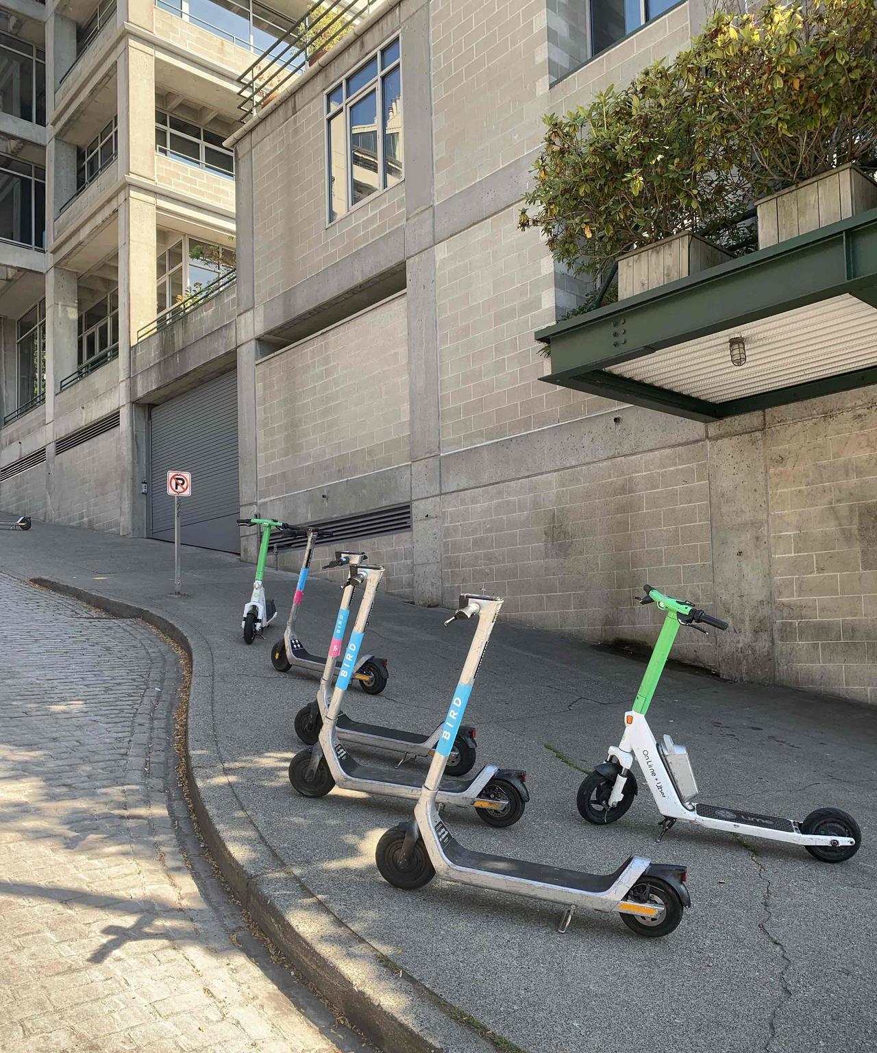 有人说,美国人家家都有私家车,没有人会骑自行车。其实不是这样的。美国也有很多人骑自行车,还有很多人,尤其是大学生喜欢骑共享单车,但基本上都是共享滑板车。共享滑板车的收费模式由解锁费和每分钟使用费组成,具体费用因城市而异。一般来说,解锁费一般不到1美元,相当于7元人民币,每分钟的费用平均为15美分,约合人民币1元。有些用户可享受半价优惠,比如说大学生群体。 照片上的就是美国大街上的共享滑板车。