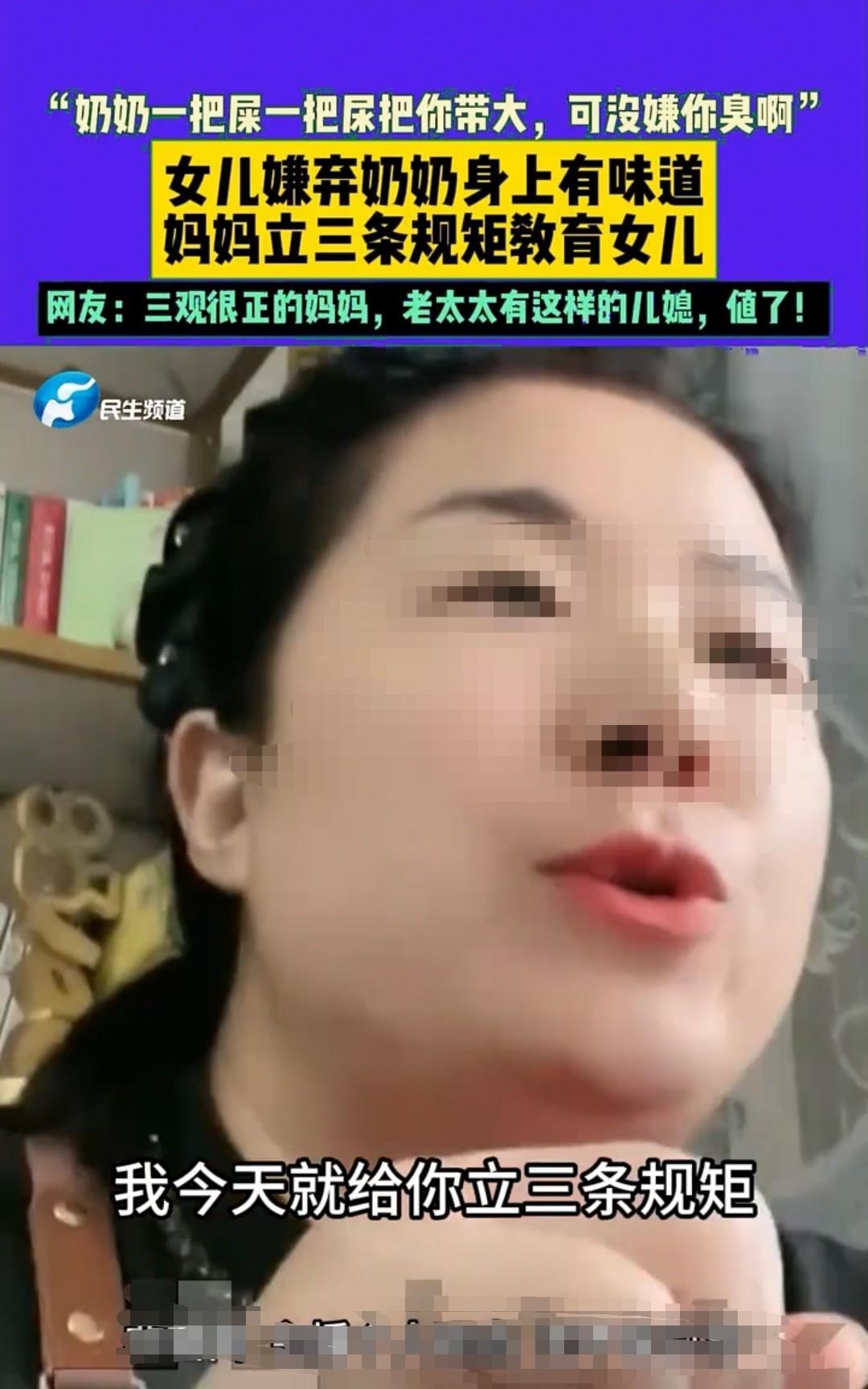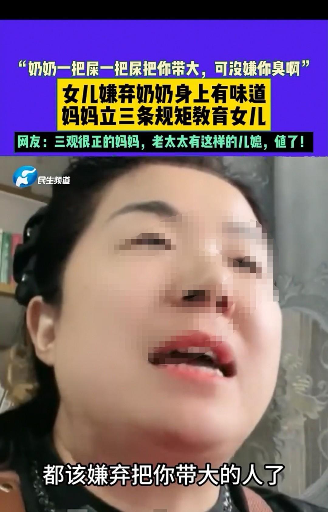 宁夏,15岁的孙女嫌弃奶奶身上有点味儿,想让妈妈把奶奶送回老家。妈妈严肃地说道:我是没教会你感恩,还是怎么的?你小时候奶奶都没嫌弃你,还一把屎一把尿把你拉扯大,你现在居然嫌弃起奶奶来了!马上给你立三条规矩:先去给奶奶赔礼道歉,再打盆热水帮奶奶擦拭身体,从此以后,奶奶的衣服袜子全由你洗。我必须要教会你做一个有温度、懂感恩的人。网友们看到后纷纷点赞,觉得这位妈妈三观超正。 妈妈从来没有想过,自己的女儿怎么会嫌弃奶奶有味。在她的印象里,自从女儿出生那一刻起,奶奶就忙里忙外,围着孙女打转。 那时候,奶奶经常端着碗追着女儿喂饭,生怕她少吃一口长不高;还经常抱着白白嫩嫩的孙女到街头显摆,说:你看我孙女长得多乖巧,以后一定是个大美女。 邻里邻居听到后,就说:你这样宠孙女,以后她肯定会孝顺你,你就等着享福吧。 可孙女现在15岁了,奶奶从没想过要图什么回报,反倒是孙女冒出了这种嫌弃的念头。作为妈妈,她心中有一种说不出来的酸楚。 她希望女儿能懂得感恩,尤其要知道奶奶的不易——把孙女拉扯大,奶奶确实付出了太多。 想当初,妈妈上夜班时,孩子就全由奶奶照顾。奶奶除了带孩子,家里的日常事务也得做,一个老年人每天要承担这么多工作量,实在不容易。 那时奶奶身体本就有老毛病,可为了让孙女玩得开心,每天都会抱着她下楼遛弯。 就这样,从十几斤抱到几十斤,后来孩子大了些,有时耍赖撒娇,奶奶还是会宠溺地抱着她。 奶奶毫无保留地把所有爱都给了孙女,可如今,孙女居然说出“奶奶身上有味,让妈妈把她送回老家”这种话。 这让当妈的情何以堪?说难听点,这就是自己教子无方。 她一直希望孩子能尊老爱幼——这是最传统的美德,可孩子连自己的奶奶都不尊重、不孝敬,又谈何“美德”? 妈妈强忍着眼泪,严肃地叫住女儿,对她说:奶奶身上的味儿,是给你洗衣做饭、操劳家务熬出来的。你小时候,奶奶从没嫌你又脏又臭,你现在倒反过来嫌弃起奶奶了? 你现在嫌弃奶奶,是不是以后也要嫌弃我和你爸爸?你不是5岁的小孩了,你都15岁了,难道在学校学的思想品德,都白学了吗? 接着,妈妈严肃地给女儿立了三条规矩:首先,你赶紧去恭恭敬敬地向奶奶赔礼道歉,必须看着奶奶的眼睛,真诚地表达歉意,不能让奶奶有丝毫委屈和不安; 其次,得到奶奶的谅解后,马上去打一盆热水,拿上毛巾,好好给奶奶擦拭身体,让她感受到你的诚意——道歉不只用嘴说,更要用实际行动证明; 最后,你不是嫌奶奶身上有味吗?那以后奶奶的衣服、鞋子、袜子,全由你来洗。让你亲身体会一下,奶奶当初是怎么把你一点点带大的,她养你小,你就必须养她老。 我必须教会你做一个有温度的人、懂感恩的人。连自己的奶奶都不知道感恩,你以后读再多书,又有什么用? 女儿听完后,默默按照妈妈的要求去做了。她终于意识到,自己之前的话有多伤人,既伤害了奶奶,也让妈妈寒了心;更明白了,奶奶才是自己的根,是永远不能忘的来时路。 网友们看到这段经历后,也纷纷点赞,感慨道:这位妈妈太棒了!三观超正!就该这样给孩子立规矩,让她记住——奶奶是谁?那是她的根,是她的来时路啊! 那么,从法律的角度来说,我们该如何看待自己是呢? 一、妈妈履行监护教育义务,符合法律对父母的核心要求。 《民法典》第二十六条规定,父母对未成年子女负有抚养、教育和保护的义务,其中“教育”包含品德培养与价值观引导。 妈妈通过立规矩要求女儿道歉、照料奶奶,本质是在履行法定教育义务。她促使女儿以实际行动弥补对奶奶的人格权侵害,同时传递“尊老”理念,其行为完全符合法律对监护人的要求。 二、奶奶享有受人格尊重与赡养扶助的法定权利。 《老年人权益保障法》第十四条要求赡养人履行对老年人生活照料、精神慰藉的义务。 奶奶作为老年人,依法享有不受侮辱、人格尊严受尊重的权利,同时有权获得家庭成员的生活照料与精神关怀。 妈妈要求女儿为奶奶擦拭身体、清洗衣物,正是督促家庭成员落实对奶奶的照料义务,保障其合法权益。 都说做人不能忘本,长辈就是我们的根本,每个人都应该学会感恩他们——有了他们的付出,我们才能拥有现在的幸福,我们才有如今的生活,不是吗? 对于此事,大家如何看? 素材来源于河南民生频道,2025年9月29日。