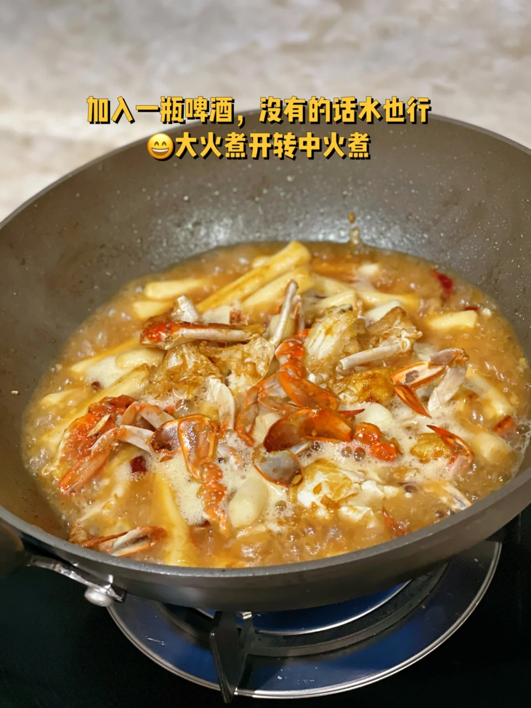 7. 加入一瓶啤酒,没有的话水也行😄大火煮开转中火煮