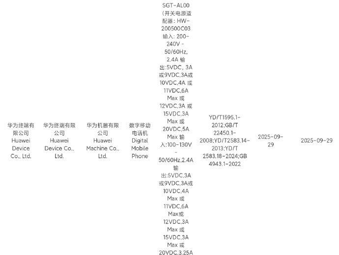 刚刚,数码博主@数码闲聊站透露,华为3款新机入网了,型号分别是:VYG-AL00、SGT-AL00、SGT-AL50,支持66W有线充和100W有线充,估计是首发麒麟9030的华为 Mate80系列来了吧?