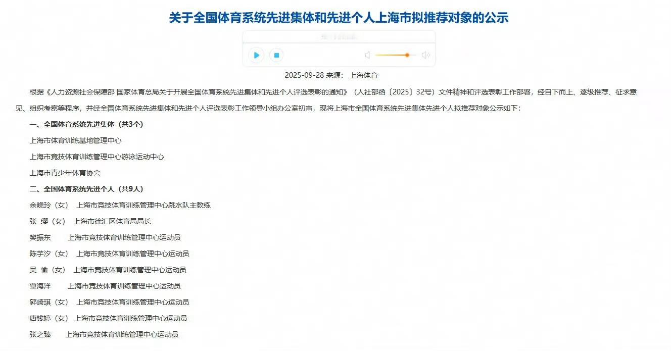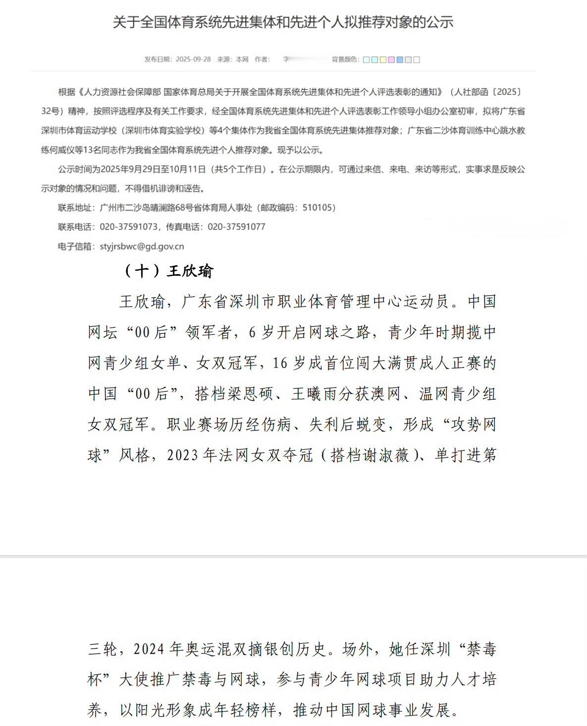 郑钦文入选全国体育系统先进个人张之臻入选全国体育系统先进个人全红婵梁伟铿王欣瑜入选先进个人