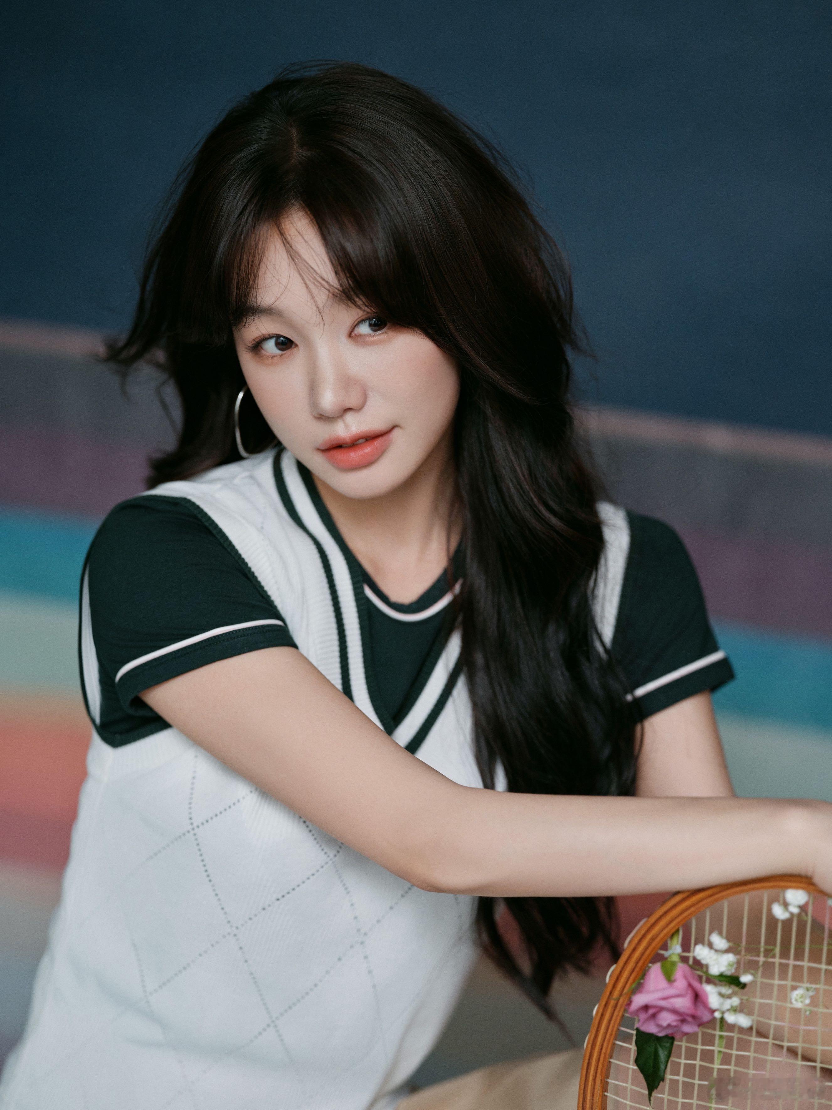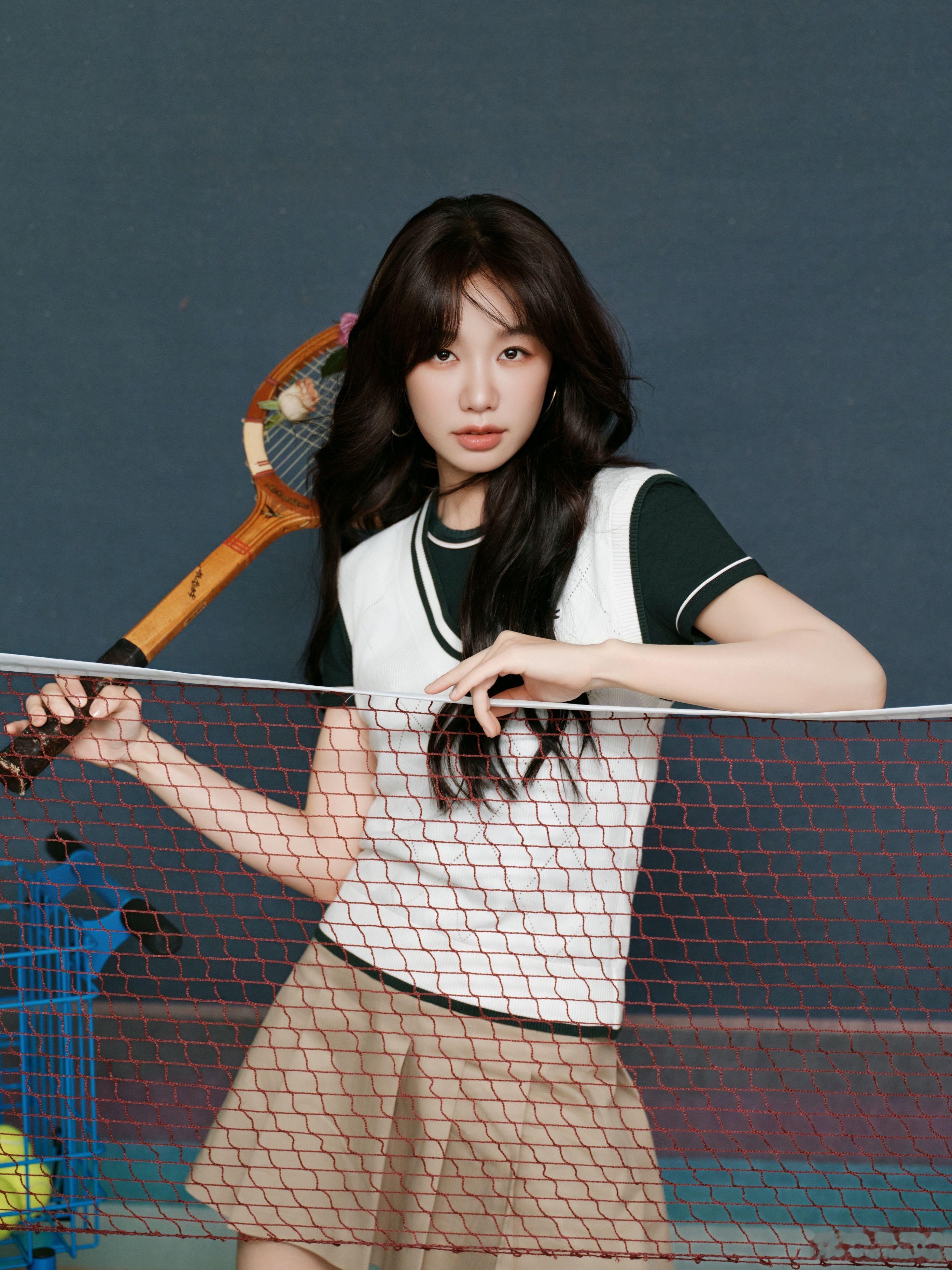 运动少女就是徐梦洁的舒适区当复古网球拍与徐梦洁相遇,学院风针织马甲配百褶裙衬出