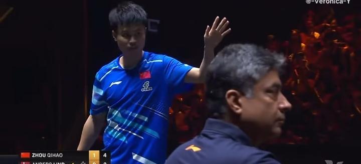 看来,只要情绪价值给足了,七号胜利在望啊[笑哭], 这是WTT中国大满贯男单1/16决赛。 看台上声浪阵阵,清脆女生们都在齐声喊“七号满电”,周启豪打得元气十足[笑哭]。 丹麦选手林德实力不容小觑,但今天周启豪手感出色,状态奇好。 评论区继续播报战况哦[笑哭]!