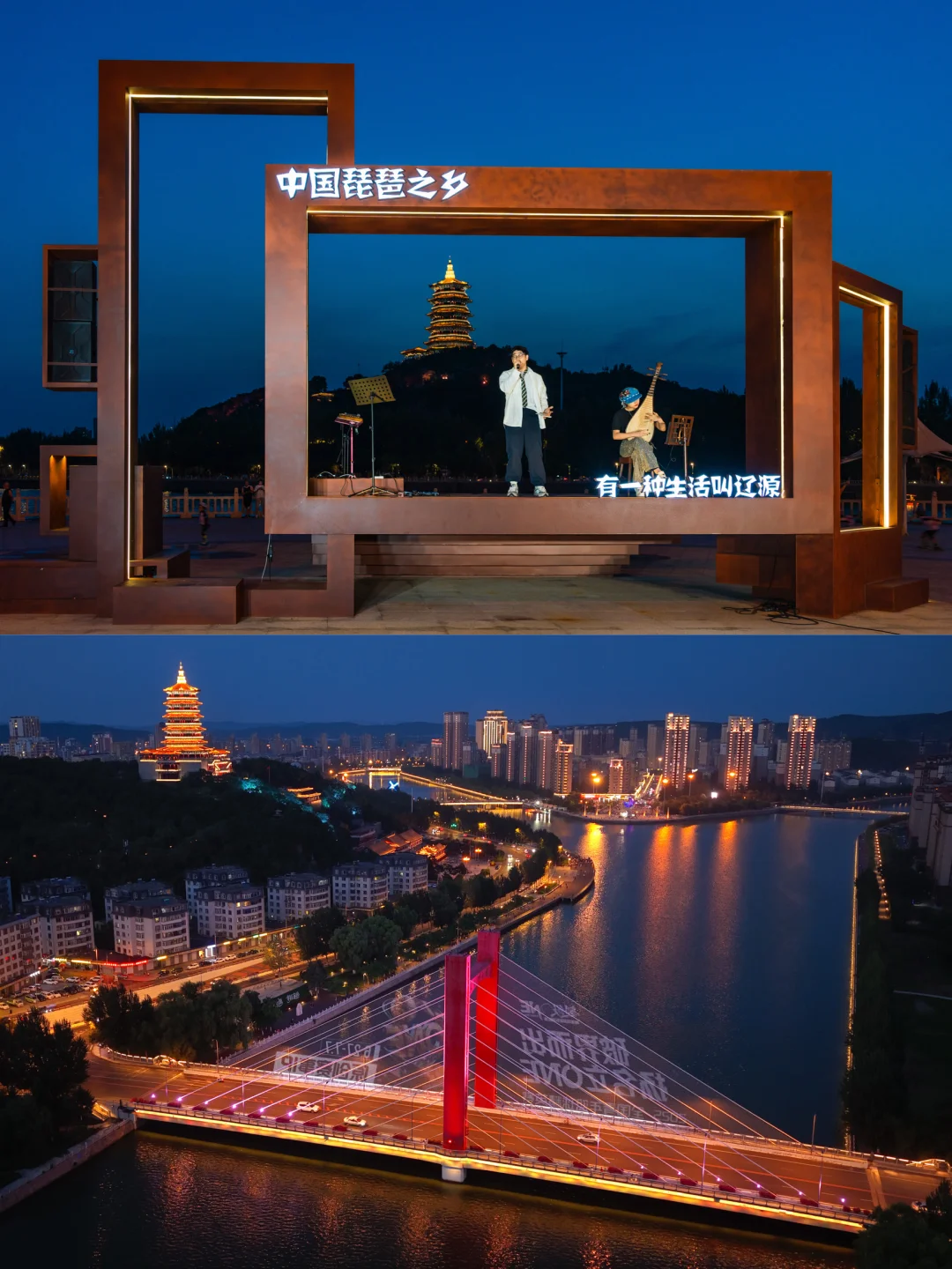 当地人夜生活广场,晚上有免费琵琶表演,拍大相框日落蓝调最美,魁星楼会亮灯