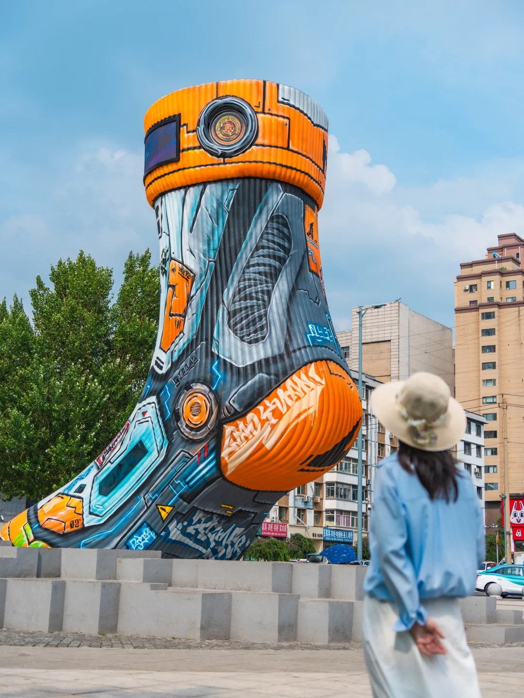 赛博朋克袜子雕塑非常有科技感,是辽源的新地标