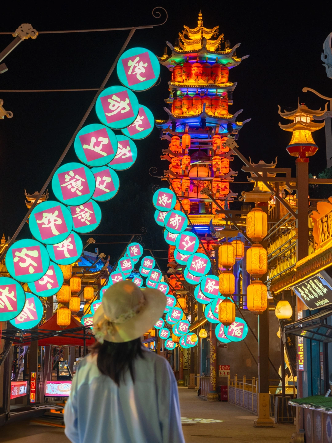 门口就有动漫打卡,进去就是美食集市,晚上有打铁花、变脸、歌舞等演出,隔壁的超级ONE公园还有篮球比赛,非常热闹