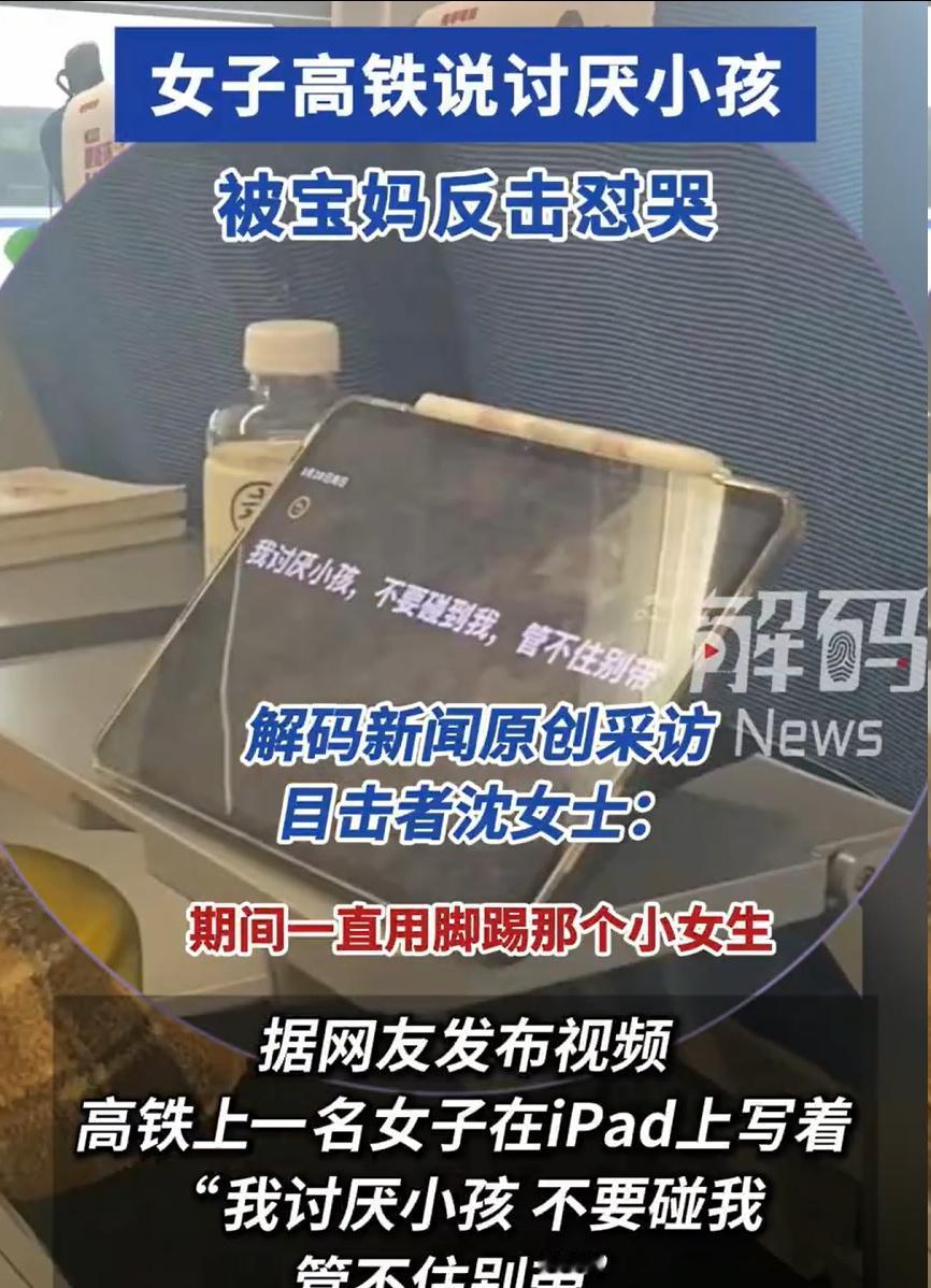 实话说坐高铁大家都是独立的个体,基本都是长途出行,需要保持体力,有的还需要睡觉,没人希望自己的权利和空间被侵犯,都希望自己乘坐的安宁权有保证。 其实也不是不理解家长带小孩的不容易,可家长对小孩要管得住,不应该对周边的人产生影响。每次都是一整个车厢,都被一两个哭闹声搞得非常郁闷。 建议不行有孩子的家长加个价,然后铁路单独把他们放一个车厢里面,感觉这样能解决根本上的问题。