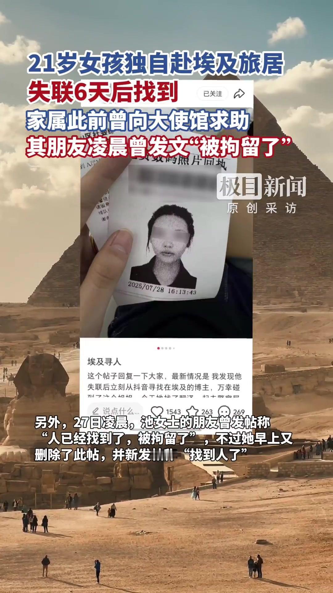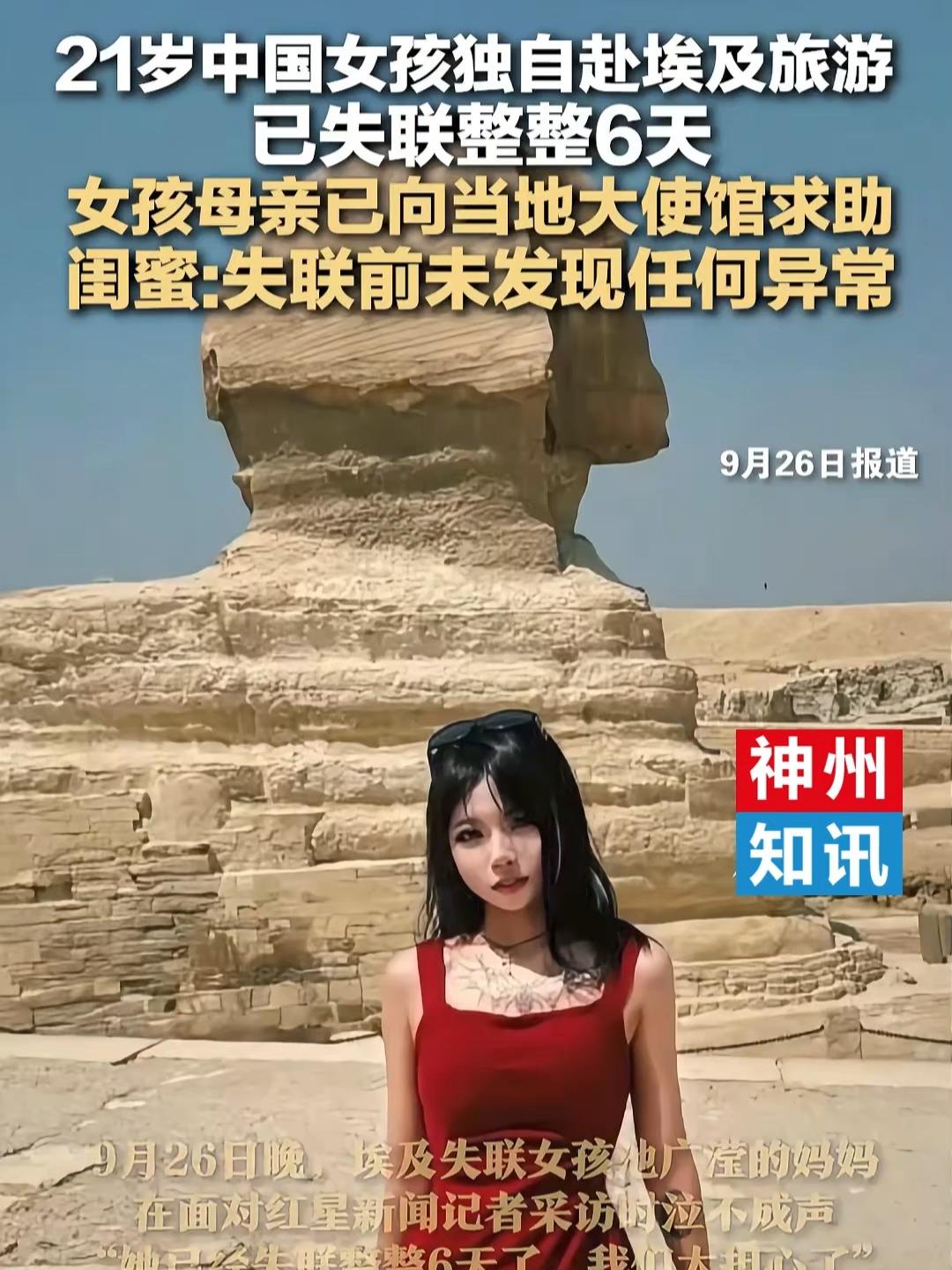 9月26日晚,一则消息曝出,21岁的中国女孩池某某在埃及旅游时已失联6天。次日,