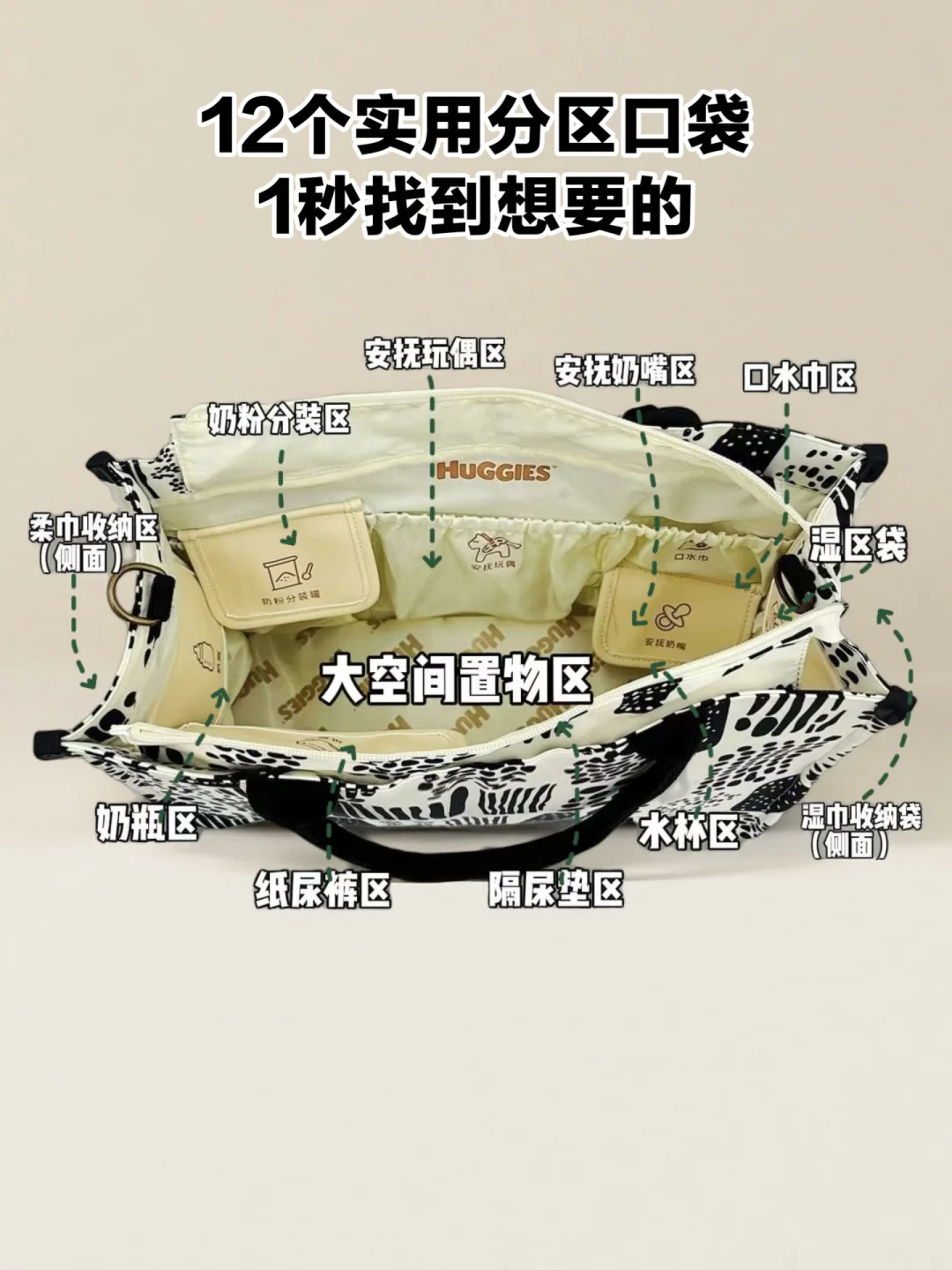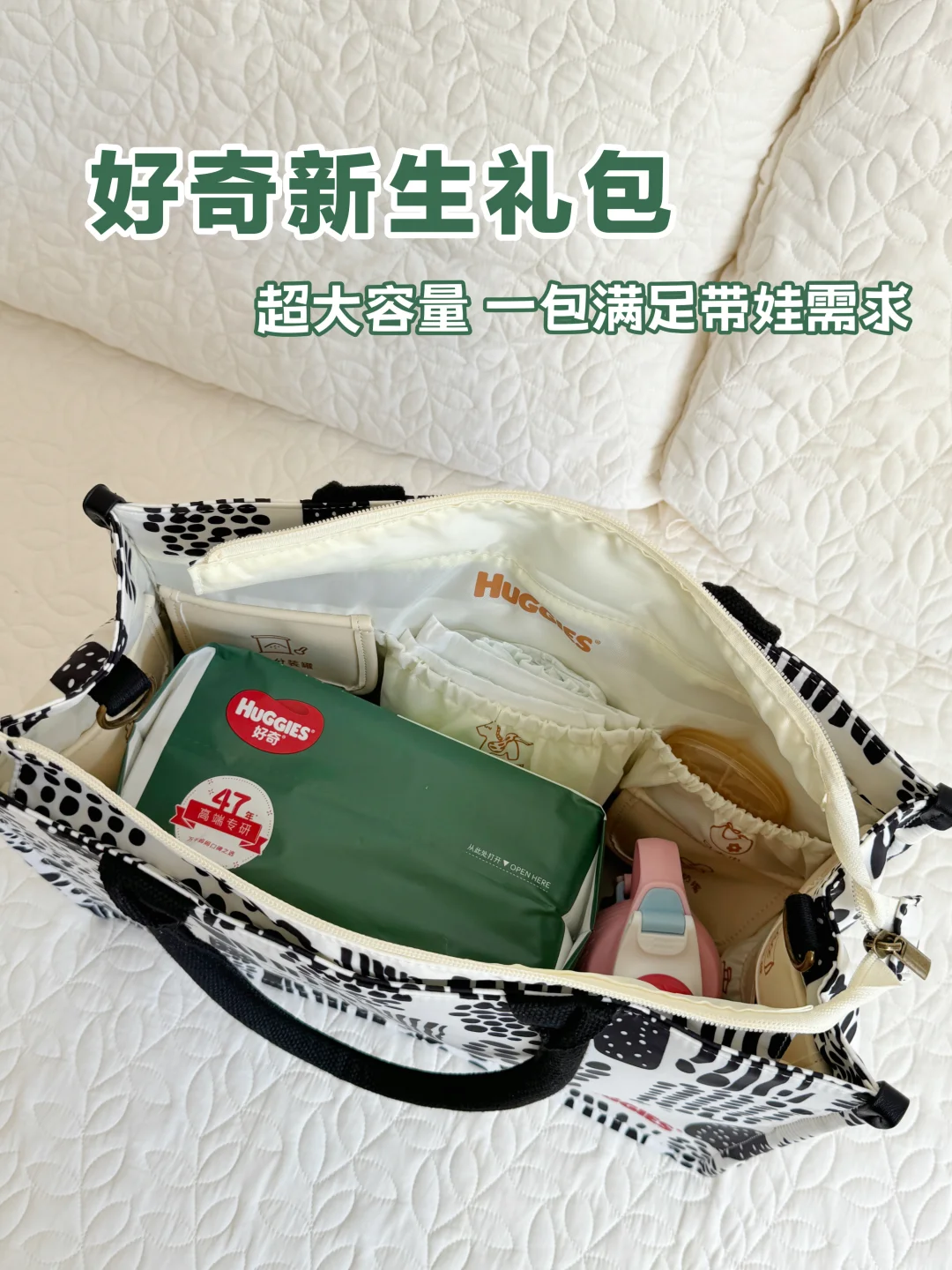 更贴心的是,买纸尿裤还送好看又实用的好奇新生礼包!内里有 12 个分区,宝宝常用的东西都能对应放好,分区收纳,不至于乱糟糟,不仅能装下待产用品,以后带娃出门的时候也能用得上!
