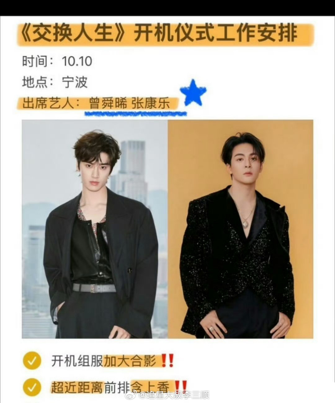 🍉双男主电竞剧《交换人生》10月宁波开机主演:曾舜晞张康乐