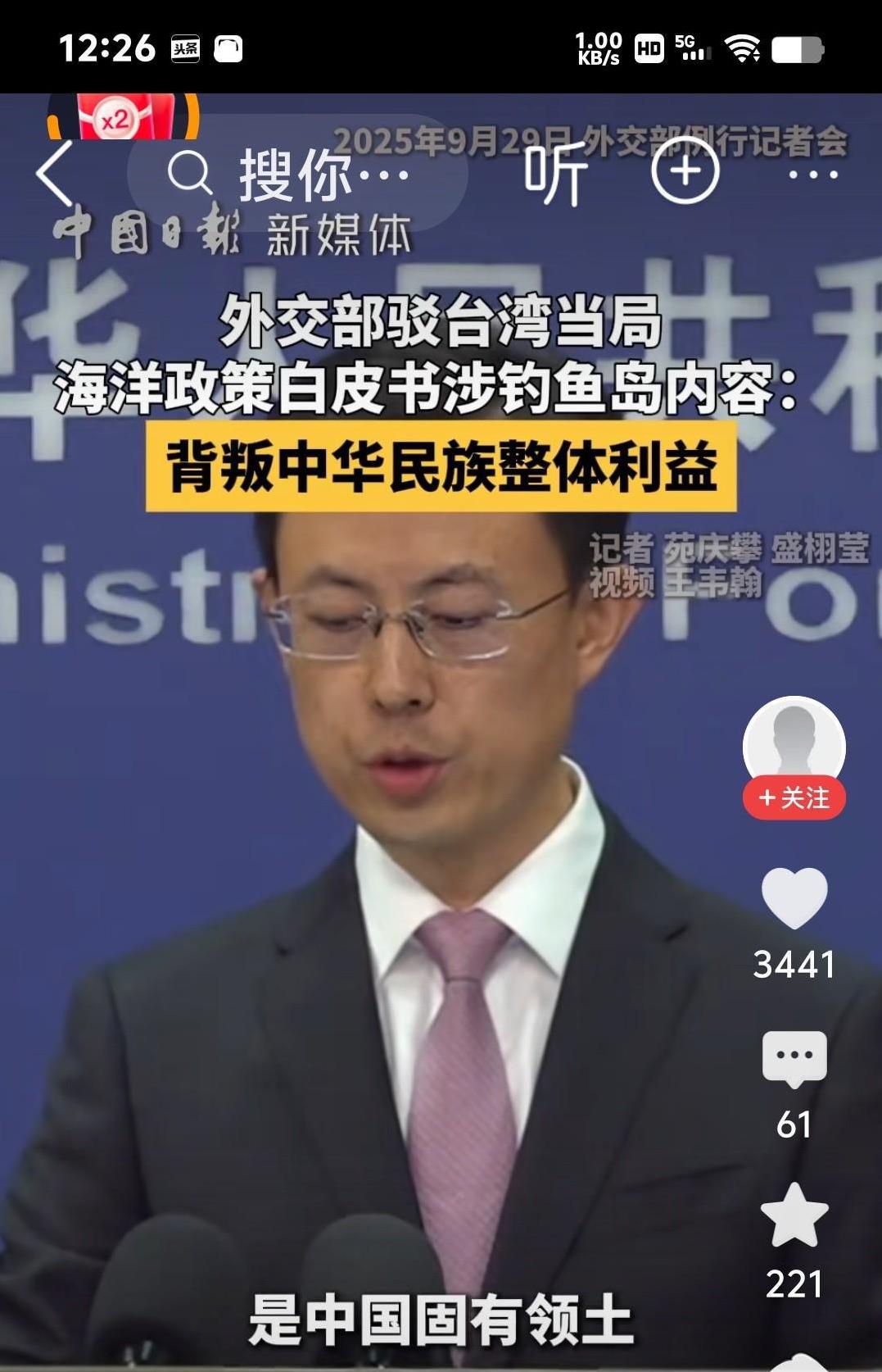 台湾当局日前推出"海洋政策白皮書"就大陆在钓鱼岛周边海域正当活动,颠倒黑白′,混淆视听,竞然背叛民族利益,甘愿充当日本说客,竞称大陆海警船干扰日方舰机和渔船。就此我外交部给予强烈反击和谴责,台当局这种跪舔日本,背叛民族利益的汉奸行为曝‘露無遗。