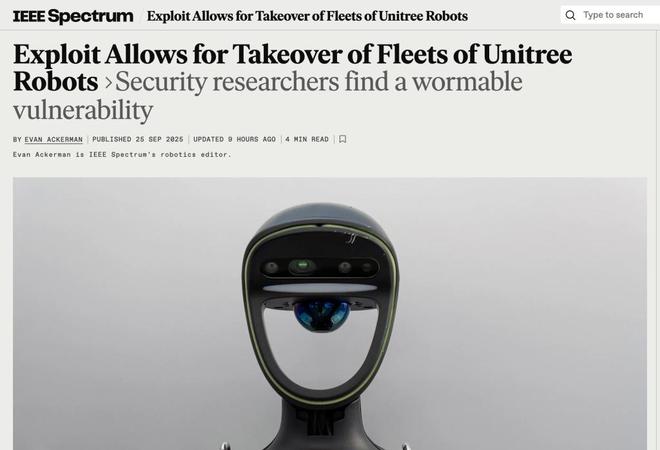 IEEESpectrum的文章也强调:“宇树并非唯一提供复杂先进四足和人形机器人的公司,类似的漏洞很可能(即使不是不可避免)也会在其他平台中发现……机器人公司几乎不在公开场合讨论安全问题,尽管即使只是存在不安全的可能性也可能造成损害。一个失控的机器人有可能造成真实的物理危险”。