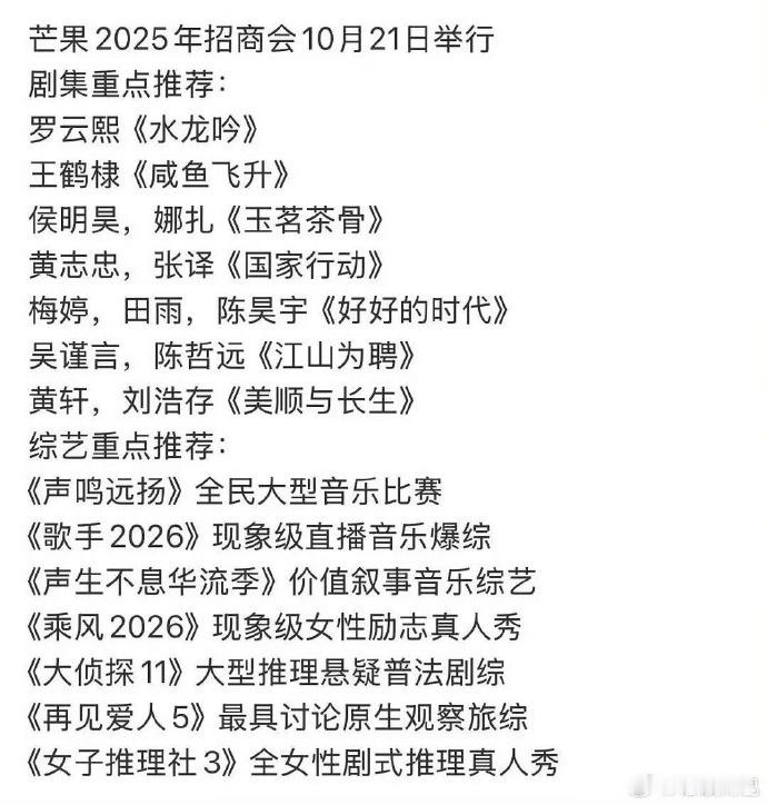 芒果2025招商会10月21日举行,芒果2025招商剧集有,咱就说你最期待哪部剧集的到来呢~