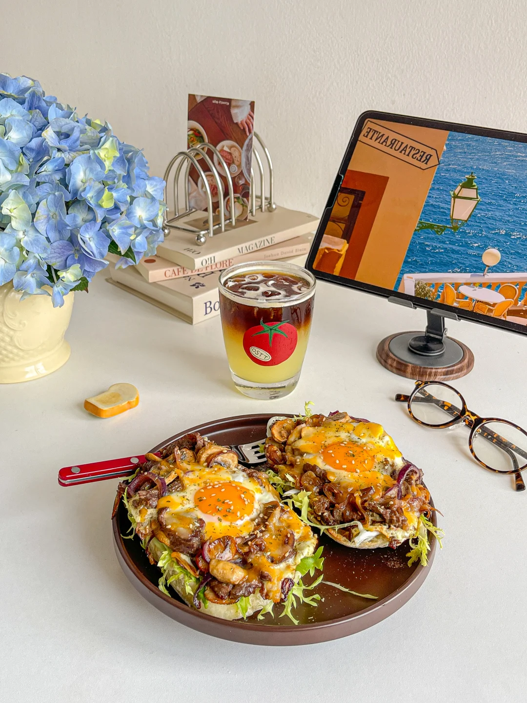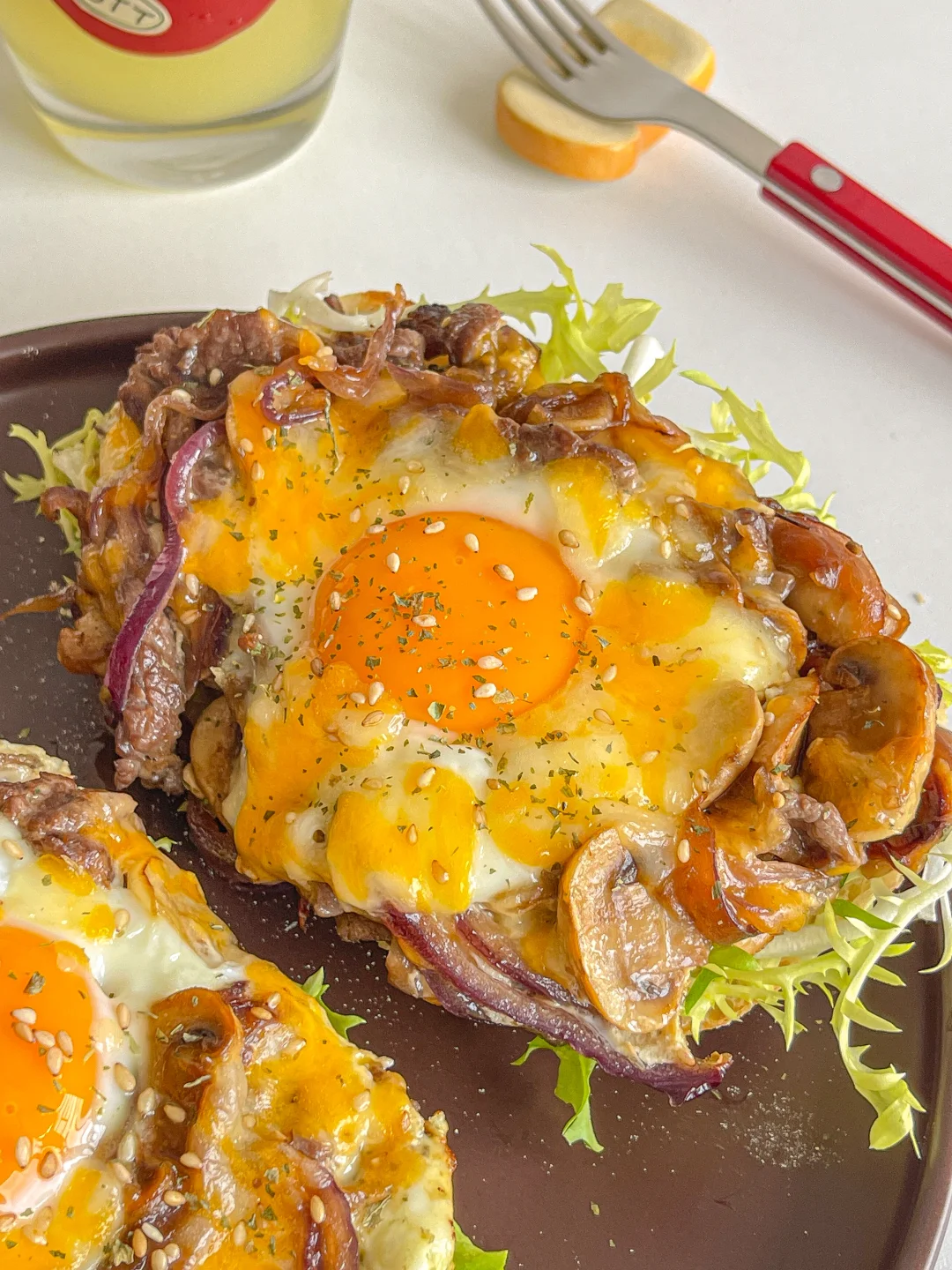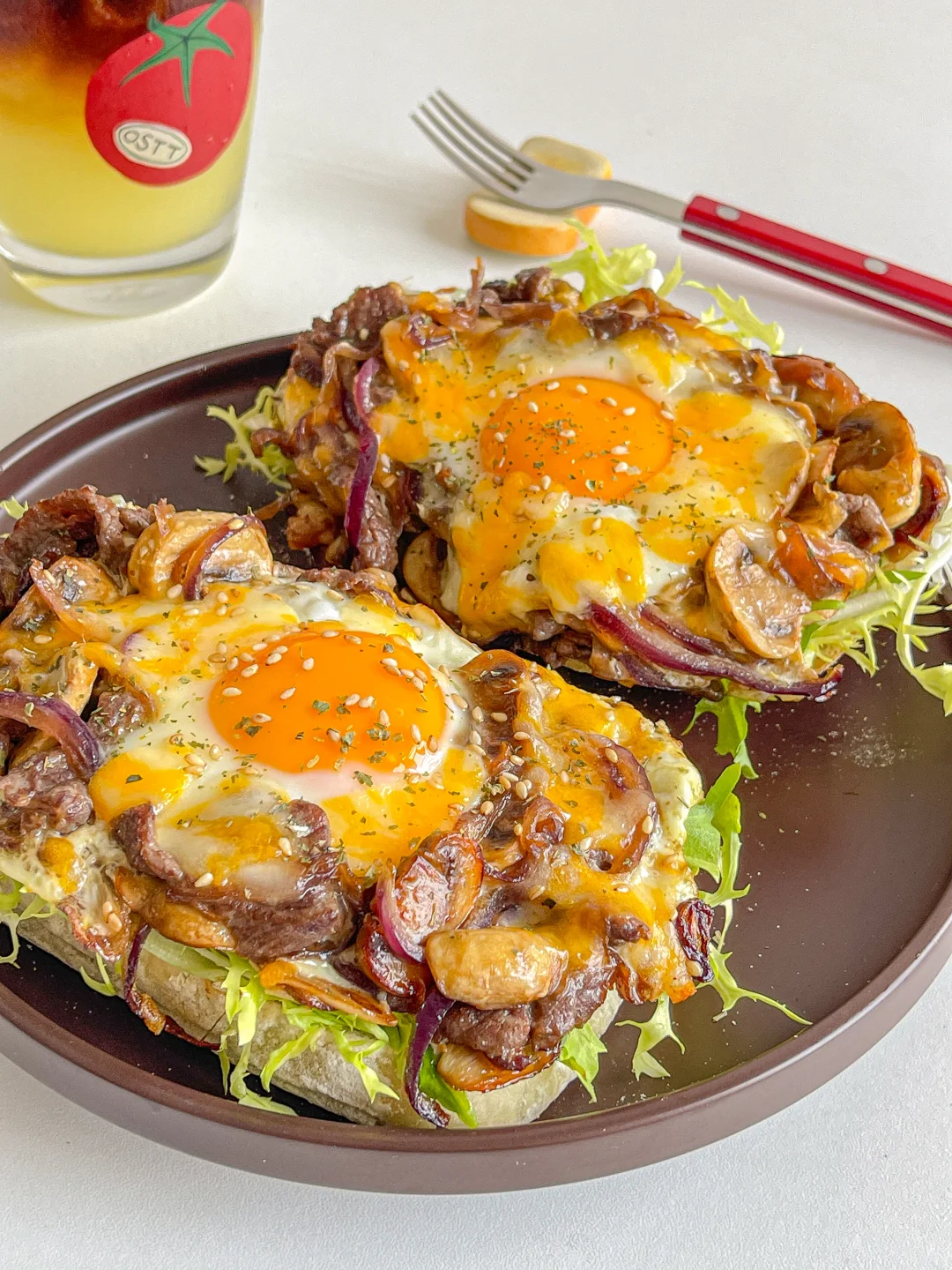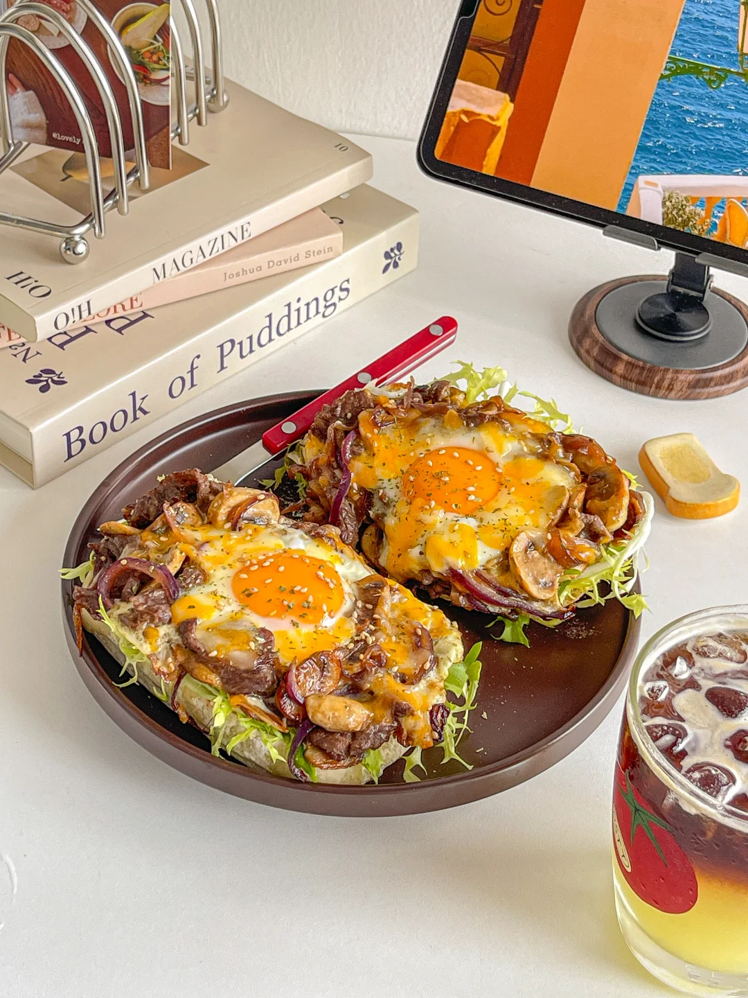 夏天来点简单的营养三明治🍳 不用再厨房呆太久 轻松搞定✌🏻 食材:🥖 恰巴塔➕苦苣➕洋葱➕大蒜➕牛肉➕芝士片➕无菌蛋 做法:🥣 1.牛肉用适量萬字蘸蛋风味酱油抓拌均匀 腌制15分钟左右 2.蒜炒香放入洋葱和口蘑 也加入蘸蛋风味酱油翻炒均匀 3.再把牛肉倒进去炒至7分熟 混合炒在一起 中间打入鸡蛋撕一些芝士片 盖上盖子焖至鸡蛋凝固即可 牛肉洋葱鸡蛋的三重搭配 低卡又高蛋白 一口咬下去 层次丰富 幸福感拉满!🥰 这份早午餐简直就是懒人快手早餐的神 巨方便 调味的部分直接加入蘸蛋风味酱油翻炒就好了 不需要其他额外的调料 干净又简单😊风味十足 !最近爱不释口的酱油 👍🏻 还用它解锁了各种水煮菜的神仙吃法✨水煮鸡蛋 青菜 或肉 加入灵魂蘸蛋酱油 一口下去鲜甜咸香 连蛋黄都变得chao鲜美 每一口都是实打实的享受 干净又健康 简直是管理期必备的酱油[偷笑R][赞R]