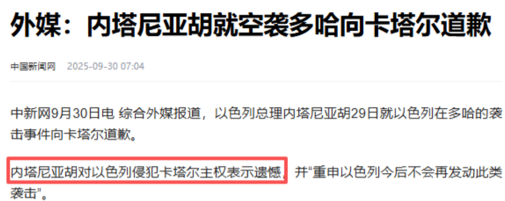 以色列低下高傲头颅认错,向世界证明以色列并非不可战胜,这给中东带来极大自信。 以色列总理内塔尼亚胡居然低头认怂了!9月29日,他突然打电话给卡塔尔首相道歉,承认之前空袭多哈的行动"侵犯主权"。消息一出,整个中东都沸腾了:那个在加沙横冲直撞的"中东小霸王",居然也有服软的一天? 事情得从20天前说起。9月9日,以色列以"清除哈马斯高层"为名,对着卡塔尔首都多哈来了一轮导弹雨。当时哈马斯正和美国谈停火,卡塔尔安全部队也在现场,这一炮下去直接炸死6个人。 要知道,卡塔尔从2021年起就是巴以冲突的"和事佬",以色列这波操作,简直是把卡塔尔的脸按在地上摩擦。 可这次以色列踢到铁板了。卡塔尔没像其他国家那样忍气吞声,而是直接联合沙特、阿联酋等海湾国家开团。他们不仅在联合国痛批以色列,还放话要调整能源合作战略。 美国这边也麻爪了——一边是亲儿子以色列,一边是金主爸爸海湾国家,两边都得罪不起,只能在中间当传声筒。 内塔尼亚胡这下慌了。要是继续硬刚,以色列可能被整个中东孤立,连美国都罩不住。权衡再三,他只能咬着牙打了这通道歉电话。不过道歉声明里那句"不再针对卡塔尔发动类似行动",明眼人都能看出猫腻——"类似行动"不包括其他地方啊,这小心思玩得挺溜。 但不管怎么说,以色列这次认怂意义重大。它打破了中东人心里的一个"神话":以色列有美国撑腰就天下无敌。现在大家发现,只要团结起来,小国也能让大国低头。卡塔尔外交部那句"反对任何形式的侵犯主权",说出了多少中东国家的心声。 更有意思的是,这次事件暴露了美国中东政策的漏洞。以前美国靠"双标"耍得团团转,现在海湾国家不吃这一套了。他们开始用主权当盾牌,用能源当武器,逼着美国在巴以问题上选边站。美国再想两头讨好,怕是没那么容易了。 这事儿对中东格局的影响才刚开始发酵。卡塔尔通过这件事,从一个"和事佬"变成了"主权捍卫者",在阿拉伯世界的威望蹭蹭往上涨。沙特、伊朗这些大国虽然没直接下场,但都在背后默默支持卡塔尔,这说明中东国家开始放下恩怨,联手对抗外部压力。 最打脸的是以色列。以前它总觉得自己是"中东唯一民主国家",现在却被小国逼得道歉,国际形象一落千丈。更惨的是,国内反对党抓住机会猛攻内塔尼亚胡,他的政治地位摇摇欲坠。 这次事件让中东人明白了一个道理:面对霸权,光靠抗议没用,得团结起来用实际行动说话。卡塔尔用20天时间,给整个中东上了一堂生动的主权课。以后以色列再想在中东横着走,可得先问问阿拉伯兄弟们答不答应。 说到底,这不是简单的外交危机,而是中东秩序重构的信号。当小国开始用主权当武器,当大国被迫在利益和道义间抉择,中东的未来,或许真的要变天了。