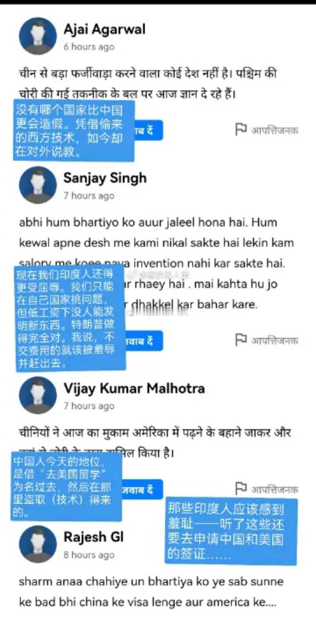 一位中国网友在自己的帖子中写道:“大量印度人展示虚假的教育资格证书。这让欧洲和美国遭受了巨大损失。欧洲和美国现在正在驱逐这些印度骗子。我们在宣布签证之后,有没有应对的办法?还是根本没考虑清楚就这样做了?”