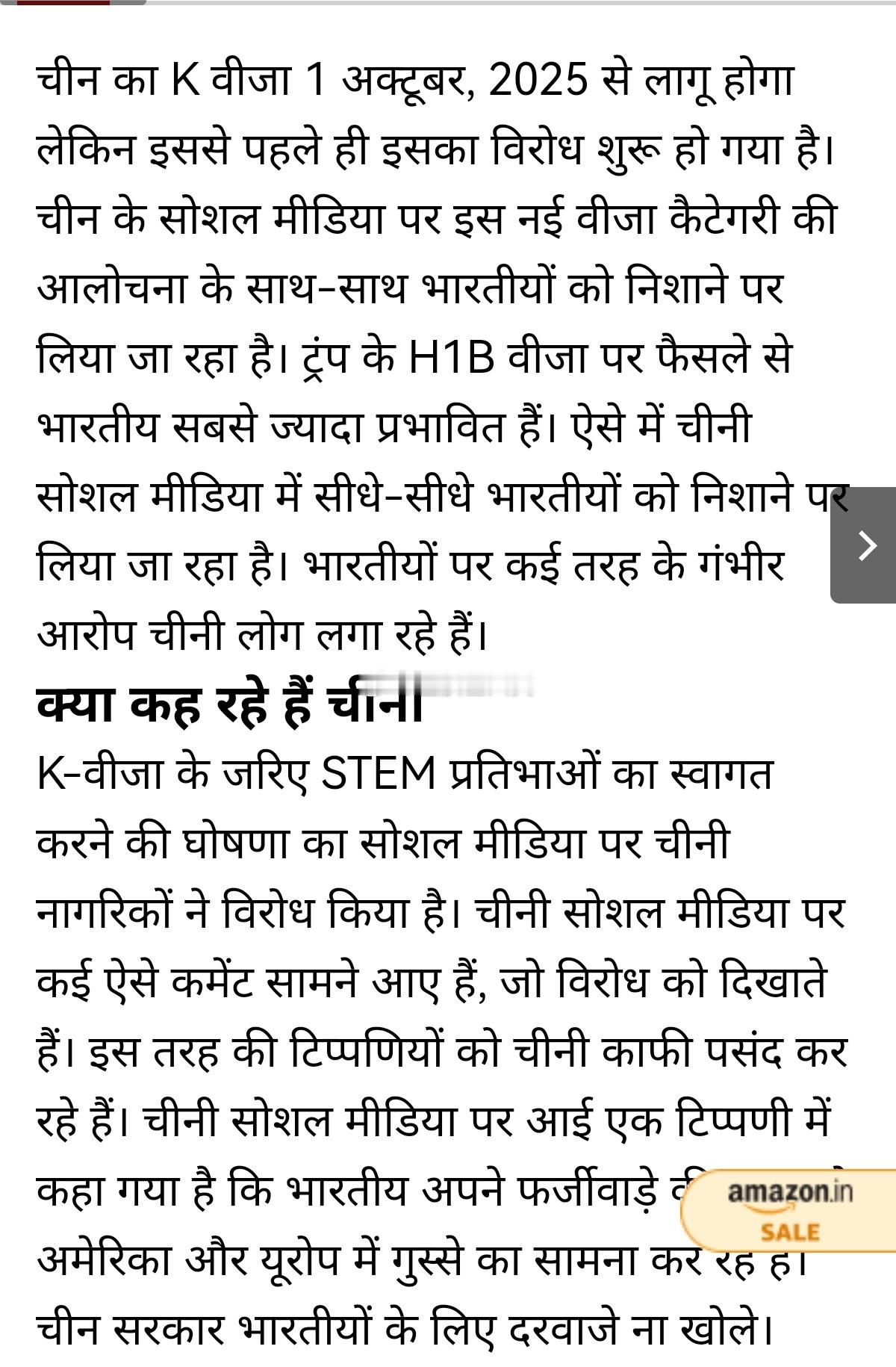 K签 搜了一下外网,印度对于k签证的报道还不少,这是印地报今天刚刚刊载的文章,说中国网民“因为k签证气炸了”,翻译如下——