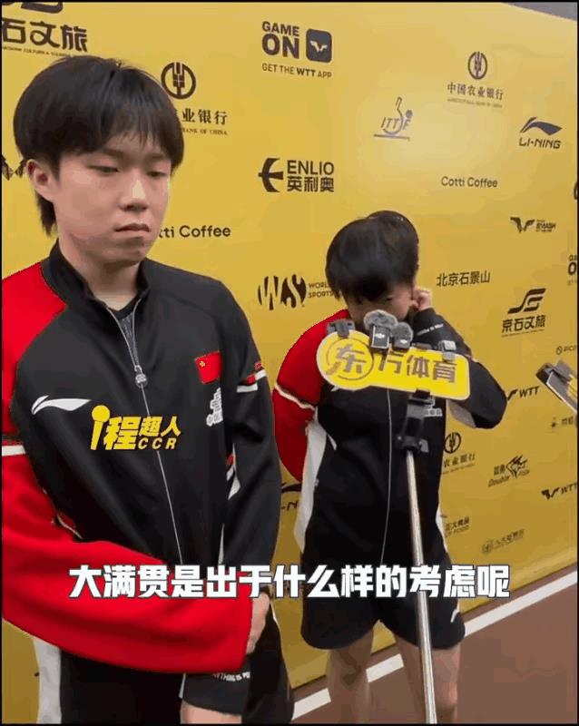 “你来,你来”! 以前都是莎莎执头,这次执头失败了! 现在是头头执莎成功。 记者问了一个问题,两个人都要回答, 莎莎“嗯”了一下,楚钦很懂莎莎,就知道莎莎想回答这个问题。 莎莎正面回答了这次北京大满贯为什么会配混双, 一是肖指导让他俩配的 二是,肖指想让他俩参加年终总决赛 三是,他俩积分不够。 这俩人属于实力第一,成绩第一,但是积分不够。 因为巴奥后,他俩没在wTT赛事上配过。 所以需要挣积分!