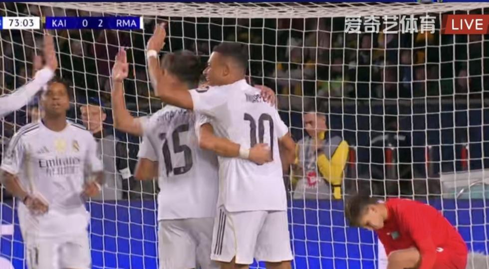 远征阿拉木图,欧冠兵不血刃!皇马五球狂胜凯拉特 10月1日凌晨,欧冠第2轮,哈萨克斯坦阿拉木图凯拉特主场迎战西班牙皇家马德里。 上半场前10分钟,以逸待劳的凯拉特“豁出去”,向皇马发动一波又一波进攻,皇马陷入极度被动。其后,皇马缓过神来,反击凯拉特。 第14分钟,姆巴佩妙传,维尼修斯单刀挑射,偏门而出。皇马失去先声夺人的机会。 第24分钟,凯拉特门将禁区内扑倒皇马进攻队员,主裁判果断判罚点球。姆巴佩主罚点球命中。皇马1比0。 第38分钟,姆巴佩为错失一次扩大比分的机会而懊恼。 下半场第52分钟,凯拉特正攻得兴起,皇马突然断球,快速反击。凯拉特后卫猝不及防,姆巴佩晃过门将,推射空门得手。皇马2比0。 第58分钟,维尼修斯“喂饼”,姆巴佩“吐饼”。姆巴佩打偏一个必进球,弄丟一个帽子戏法。 第67分钟,主裁判先判罚皇马禁区内绊人犯规,处以点球。回看VAR视频,取消这一判罚,改判凯拉特进攻队员主动找摔。 第73分钟,皇马围攻凯拉特,姆巴佩见缝插针,完成帽子戏法。皇马3比0。 第80分钟,姆巴佩下场休息。姆巴佩远征阿拉木图,独进3球,功德圆满。 第83分钟,刚刚替换上场的卡马文加头槌破门,锦上添花。皇马4比0。 补时读秒声中,替补登场的迪亚斯斜射入网,为皇马锁定5比0胜局。