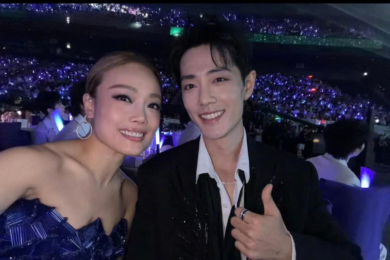 2025年9月28日“湾区升明月”晚会上,容祖儿晒出与肖战、王力宏的同框合照引发