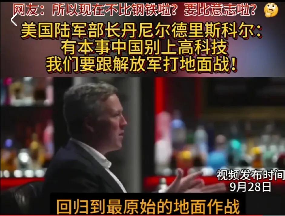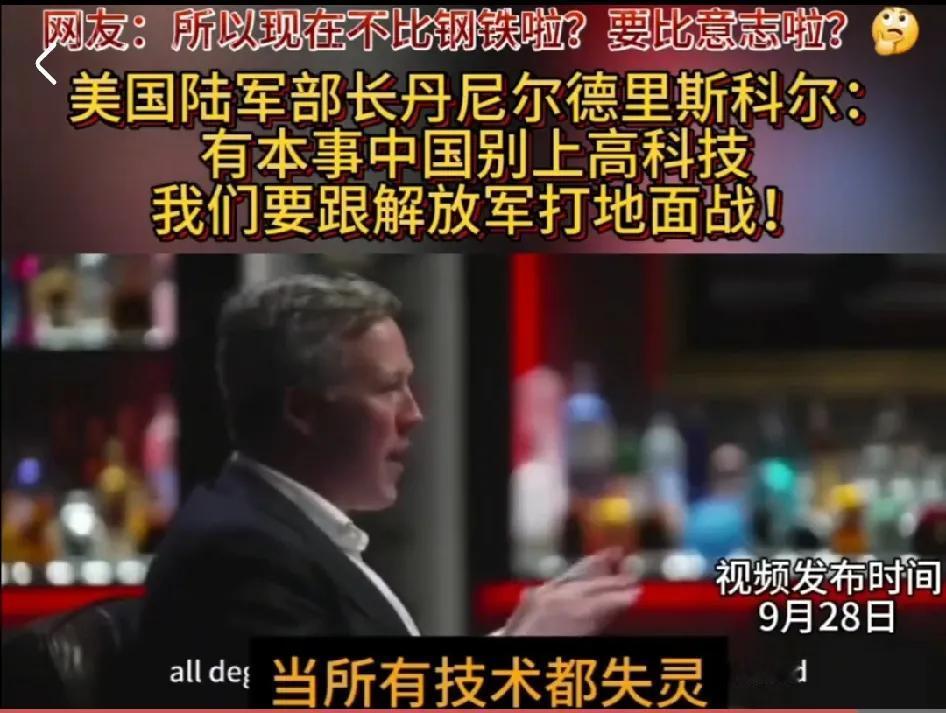 美军:解放军!你的高科技研究完了吗? 解放军:没有。 美军:你没完了嘛!能不能不要搞了! 解放军:不可能。 美军:好吧,你研究出来也没卵用! 解放军:为什么? 美军:我能让它们失灵。 解放句:怎么做到。 美军:你别管,我就会! 解放军:然后呢? 美军:打仗还是要回到以人为本! 解放军:你确定? 美军:有本事不用高科技,打一场! 解放军默默拿出冲锋号! 美军:[恐惧],你等会,我去趟厕所!