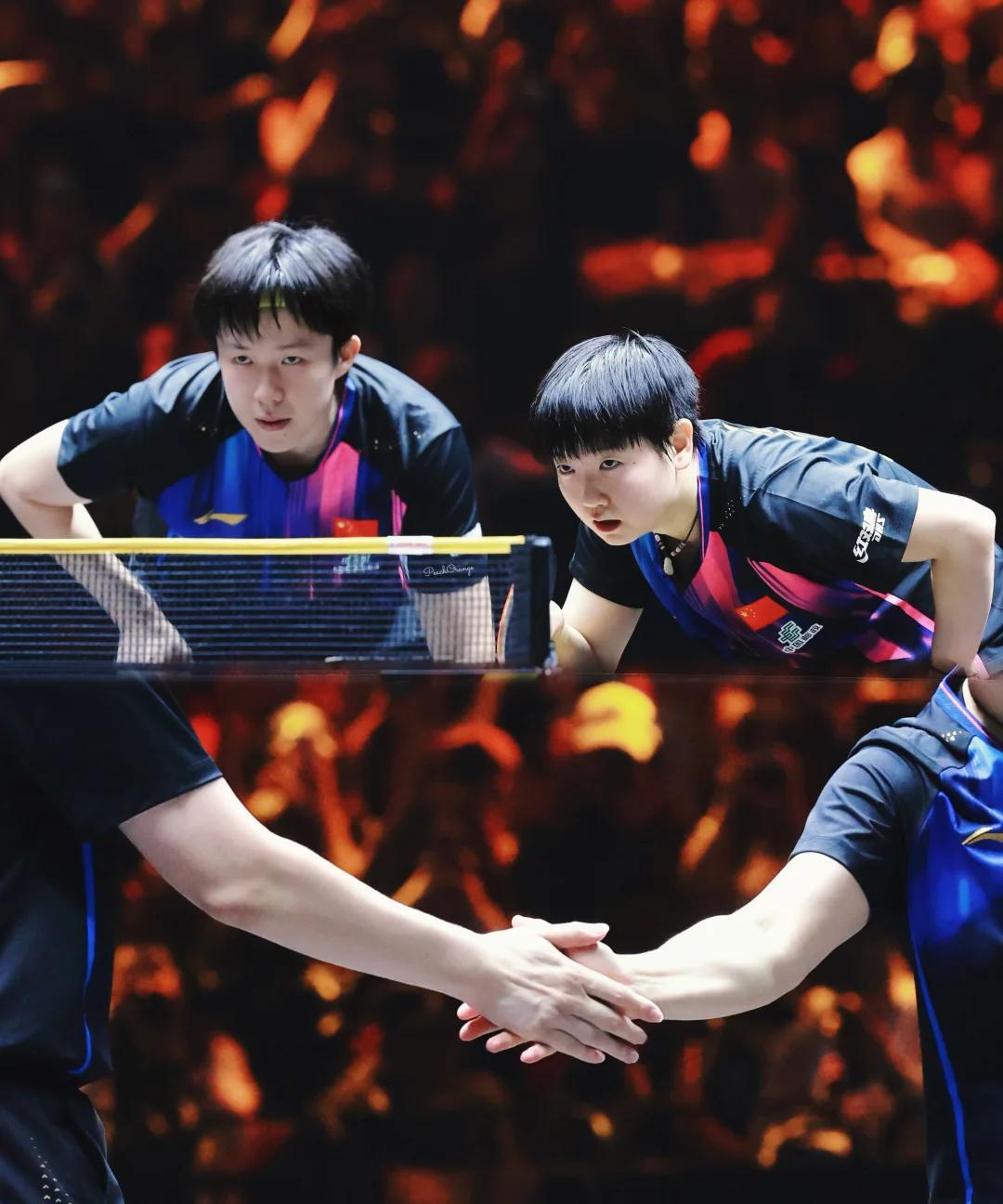 肖导:我差点就能插上话了。 还是带一胎幸福啊,虽然昨晚俩人首局没有拿下来,但是央 妈说了那是因为他们俩久别重逢,依旧是在场上有商有量的两个学霸,默契一直在,肖导也还是一如既往插不上话,带这俩孩子确实会轻松,有问题俩人自己就解决了,真好。 这次中国大满贯赛,林诗栋蒯曼拆对了,换蒯曼和陈垣宇两个人打混双,第一场的时候俩人比较陌生,配的不太好,但是也还是3-2逆转拿下,昨天的混双1/8决赛,看到俩个人开始熟了,肖导也是情绪价值拉满,和蒯曼说的时候一直笑眯眯的,说打的一点问题都没有,这次比赛肖导让蒯曼主导起来,蒯曼采访时候说陈垣宇小将时,自己也笑场了,看得出来蒯曼这次打的挺开心。不过今天的混双1/4决赛,就是王楚钦/孙颖莎对陈垣宇/蒯曼了,这下肖导可以休息了,看着这两对在场上比心眼子吧。 虽然莎莎和楚钦有很长时间没有配混双,但是只要有混双的比赛,彼此的身边还是彼此,他们俩对未来的混双还是有规划,今天的比赛中国队继续加油!