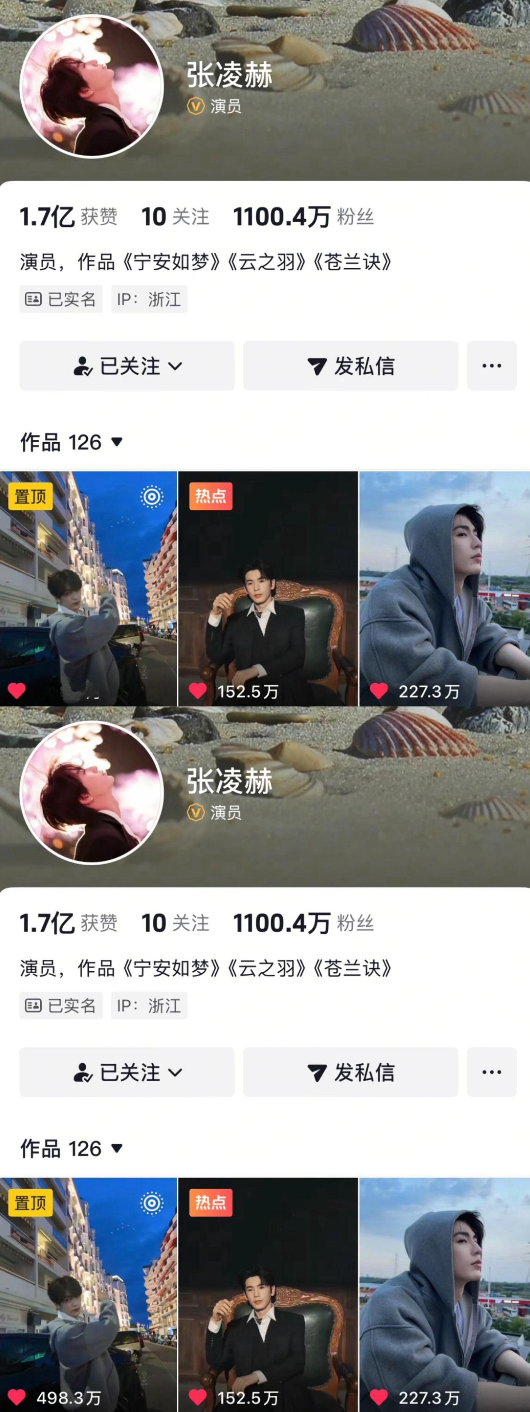张凌赫🫘粉丝突破1100w爱上凌帝也是人之常情大爆演员张凌赫🔥🔥的很安