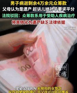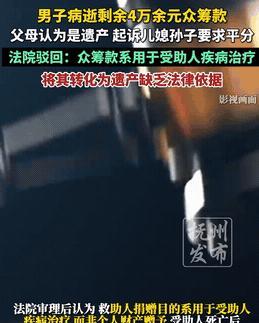 广东德庆,李先生被查出癌 症,前期治疗掏空积蓄,后续费用如无底洞。妻子在亲友建议下于“某某筹”发起求助,很快凑够阶段性治疗费。可李先生治疗半个多月后病逝,扣除费用还剩4万多。李先生父母要求平分,被儿媳拒绝,老两口将儿媳和俩孙辈告上法庭,经审理后诉求被驳回。 素材来源于:抚州发布 45岁的李先生感觉身体不适,去一检查,竟被确诊为癌 症。家里积攒的那点积蓄,很快就在前期的治疗中花得一干二净。 后续的化疗、靶向药等费用,就像一个无底洞,让这个本就不富裕的家庭陷入了绝境。 在亲友们的建议下,李先生的妻子想到了网络筹款。她怀着忐忑的心情,在“某某筹”平台上发起了求助。 她详细地说明了李先生的病情、治疗过程以及后续所需的费用,每一个字都饱含着无奈与期盼。 不少人被李先生的遭遇所打动,纷纷伸出援手。有的捐几十,有的捐几百,大家的心意汇聚成了一股强大的力量。 很快,就凑够了阶段性的治疗费用。李先生的妻子看着账户里不断增长的数字,心中燃起了一丝希望。 尽管积极治疗了半个多月,李先生的病情还是急剧恶化。最终,他还是永远地闭上了眼睛。 李先生的妻子整理各种单据,扣除医药费、住院费等费用后,账户里还剩下4万多元。她心想,这些钱虽然不多,但或许可以用来还一些之前为了治病欠下的债。 然而,李先生的父母得知此事后,却找上了门。他们认为,这4万多元是儿子的遗产,应该由他们和儿媳平分。 李先生的妻子觉得,这些钱是大家为了给丈夫治病捐的,应该按照公益捐赠来处理,怎么能算作遗产呢? 双方各执一词,争执不下。老两口见儿媳不肯妥协,竟然将儿媳和两个未成年的孙辈告上了法庭。 李先生病逝后,其父母认为剩余的4万多元是儿子遗产,应由他们和儿媳平分。儿媳则觉得这是大家为给丈夫治病捐的,应按公益捐赠处理,不算遗产。 这笔剩余众筹款到底属于什么性质,是遗产还是公益捐赠款项,她们的主张是否符合法律规定呢? 1,关于遗产的认定。 根据民法典第一千一百二十二条规定,遗产是自然人死亡时遗留的个人合法财产。这里强调的是自然人死亡时遗留的财产。 在这起事件中,剩余的4万多元众筹款,并非李先生死亡时就已经确定属于他的个人财产。 这笔钱是通过网络众筹平台,基于李先生患癌需要治疗这一特定目的,由众多爱心人士捐赠而来。 捐赠人的意图是帮助李先生治疗疾病,而不是让这笔钱成为李先生的遗产。 所以,从遗产的定义和构成要件来看,这4万多元不符合遗产的特征,不能认定为遗产。 2,公益捐赠。 根据民法典第六百五十七条规定,赠与合同是赠与人将自己的财产无偿给予受赠人,受赠人表示接受赠与的合同。 在本事件中,众多捐赠人在“某某筹”平台上看到李先生的病情和求助信息后,自愿将钱捐赠出来,这是一种赠与行为。 而且,这种赠与具有特定的公益目的,即用于李先生的癌症治疗。 当李先生病逝,治疗目的已经无法完全实现时,剩余的款项应当按照公益捐赠的初衷和性质来处理,而不是随意改变用途。 李先生的父母主张将剩余款项作为遗产平分,违背了捐赠人的意愿和公益捐赠的性质。 民法典虽然规定了继承的相关内容,但这是在符合遗产认定条件的前提下。由于剩余众筹款不属于遗产,所以不能按照继承法关于遗产分配的规定来进行平分。 李先生的妻子作为家庭的一员,在处理这笔款项时,应当遵循公益捐赠的原则,合理使用剩余资金,而不是将其据为己有或者违背捐赠人意愿进行分配。 经过一番审理,最终驳回了老两口的诉求,认定剩余的众筹款应用于公益用途。