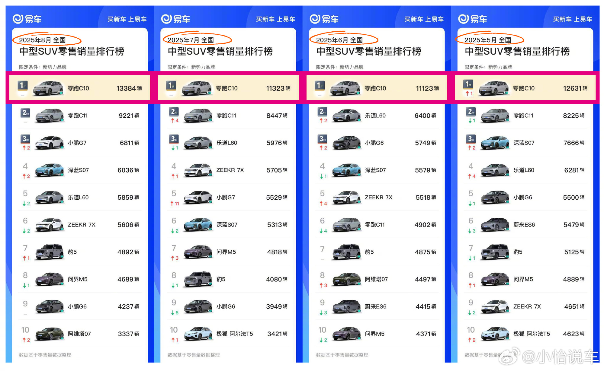 零跑他不仅仅懂用户,还擅长打造爆款,B01连续两月交付破万,B10九月销量同样破万,C10累计交付16万台并稳居新势力中型SUV销冠,C16则在20万以内的中大型SUV中持续霸榜,这么多爆款车辆,产品还在不断升级,零跑太牛了!